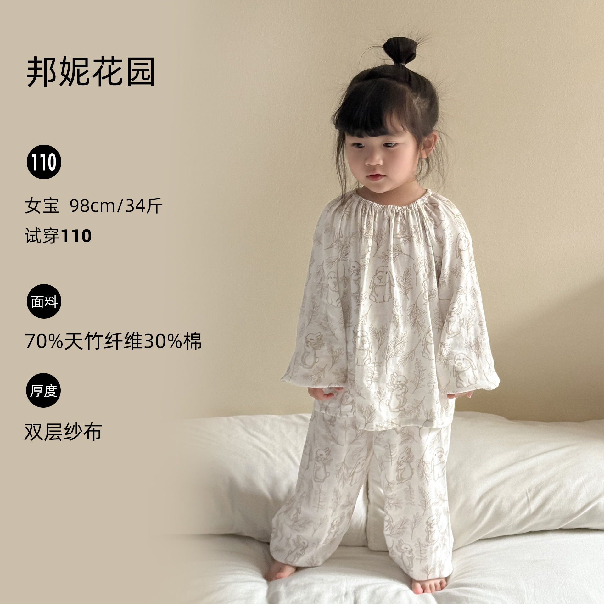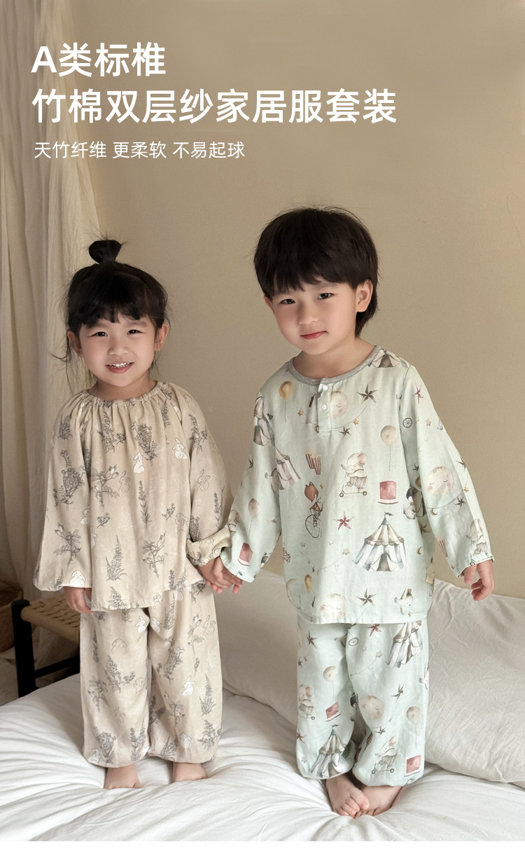 클래스 A 대나무 면 거즈 아동복 여름 얇은 소년 소녀 잠옷 아기 봄, 가을 에어컨 옷