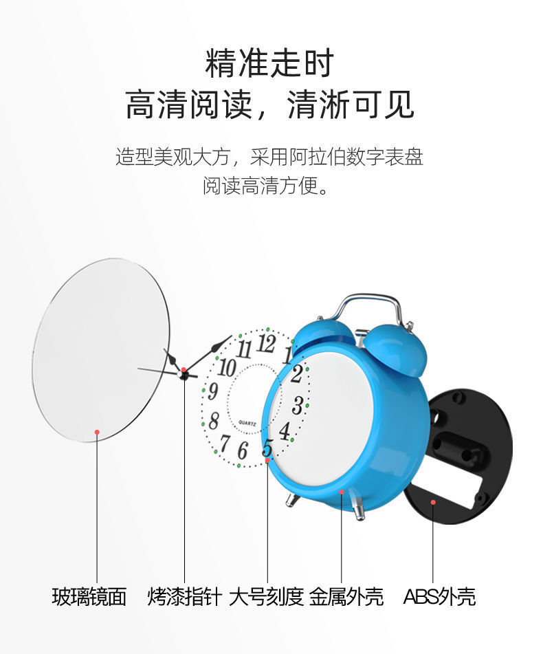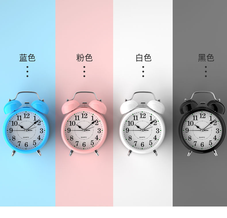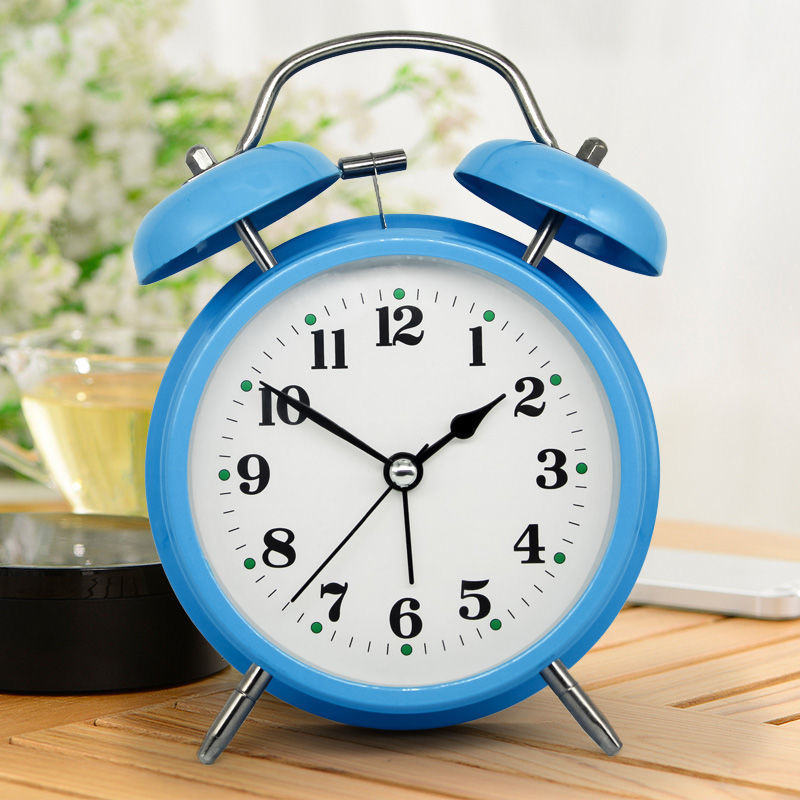 금속 벨 알람 시계 창조적 인 조용한 학생 침대 머리 게으른 야간 조명 간단한 창조적 인 작은 알람 미터 슈퍼 조용한
