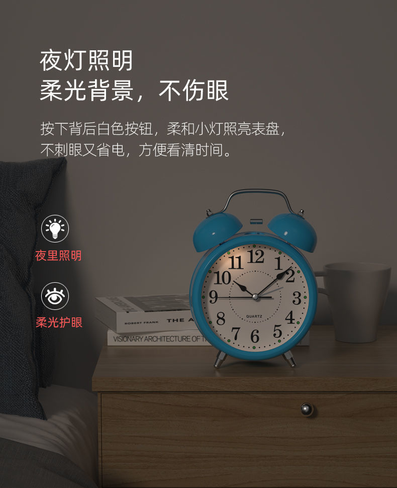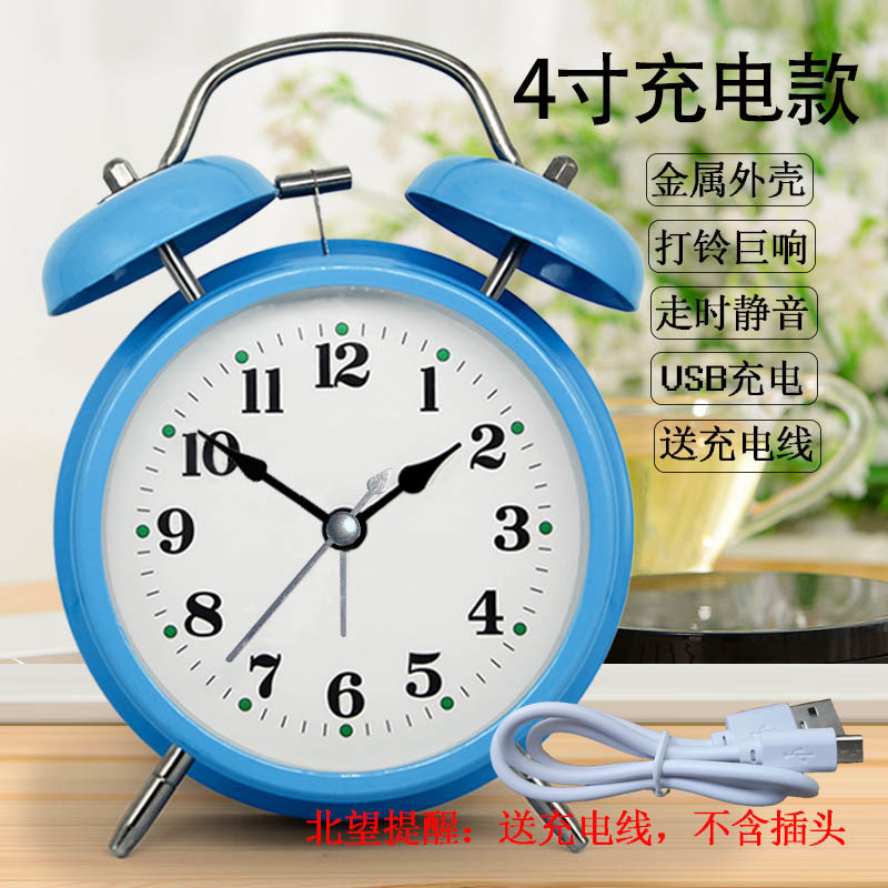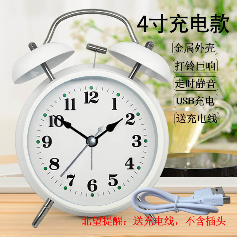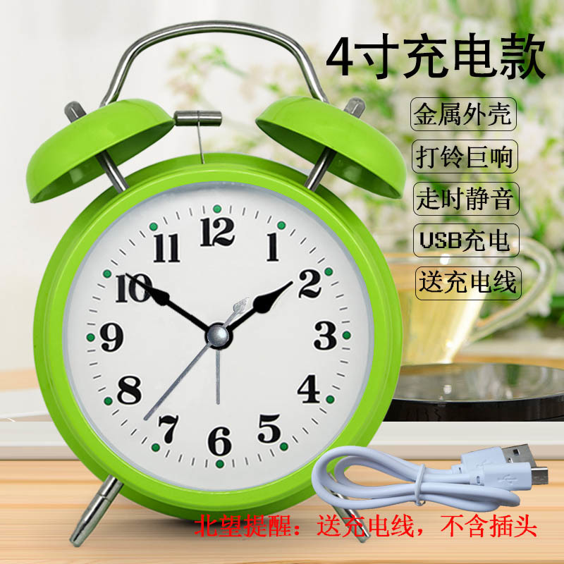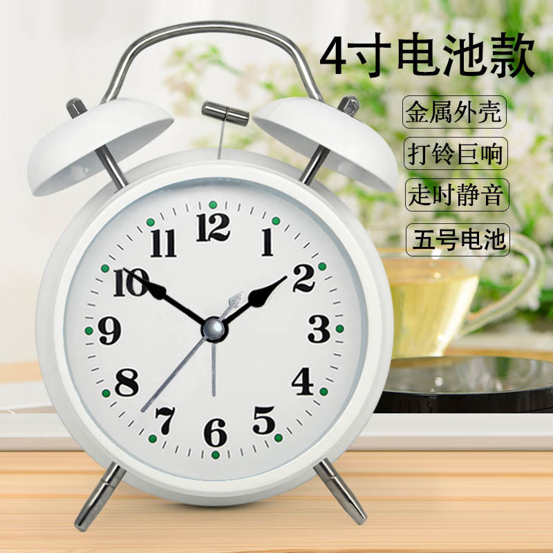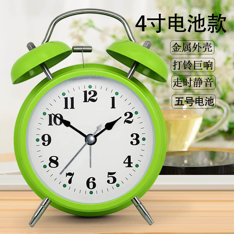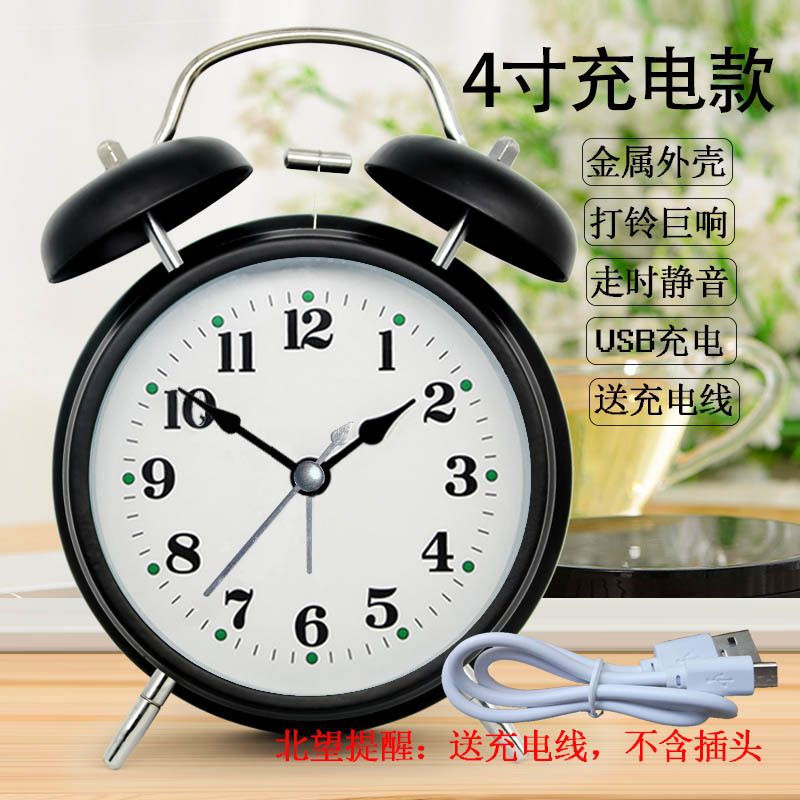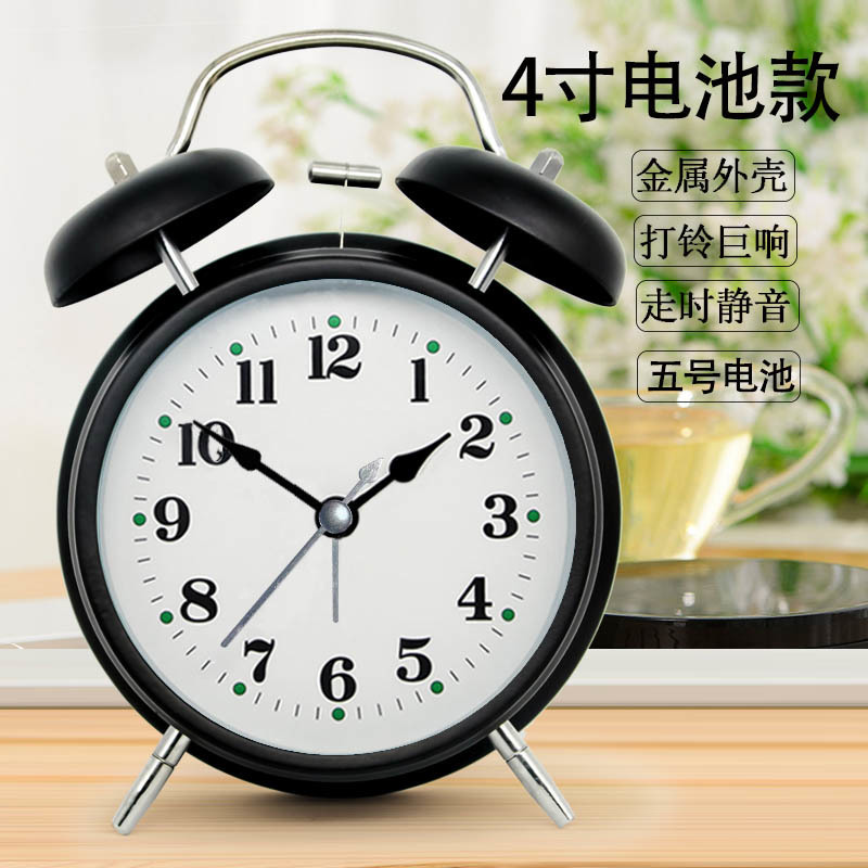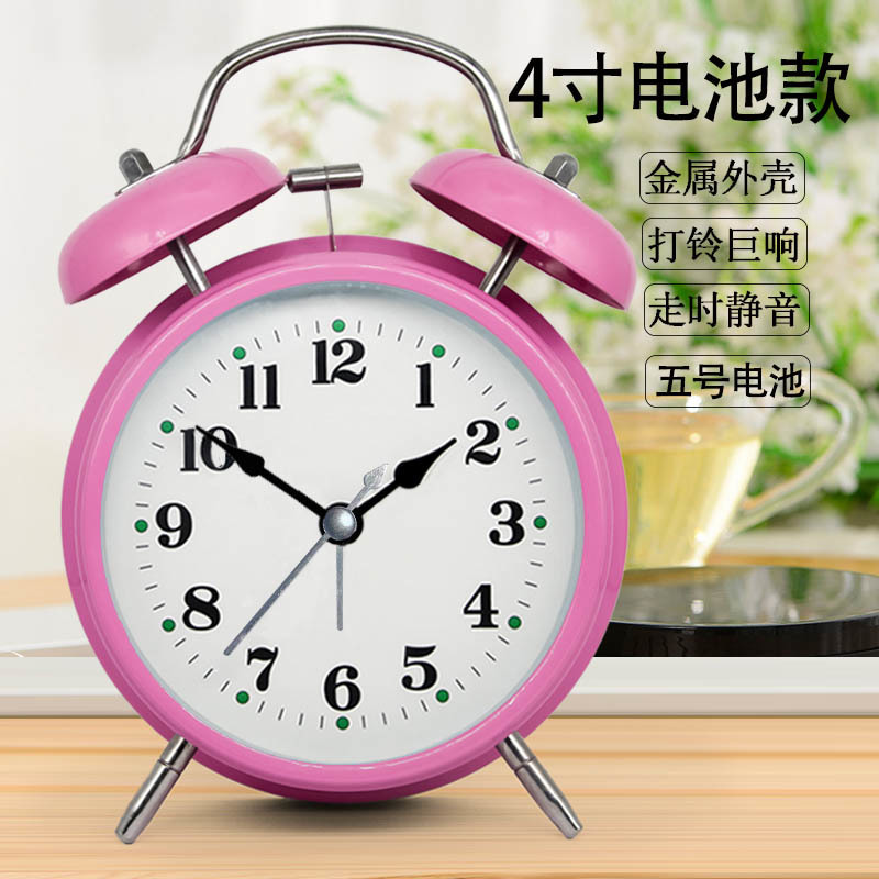 금속 벨 알람 시계 창조적 인 조용한 학생 침대 머리 게으른 야간 조명 간단한 창조적 인 작은 알람 미터 슈퍼 조용한스토어 가기