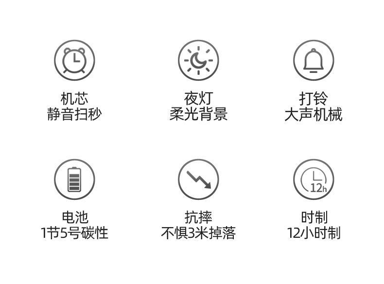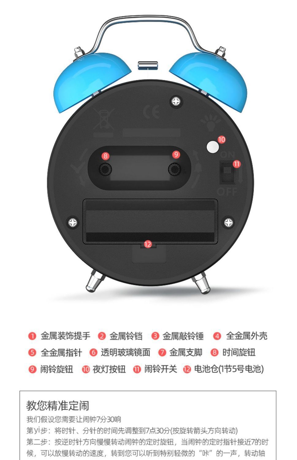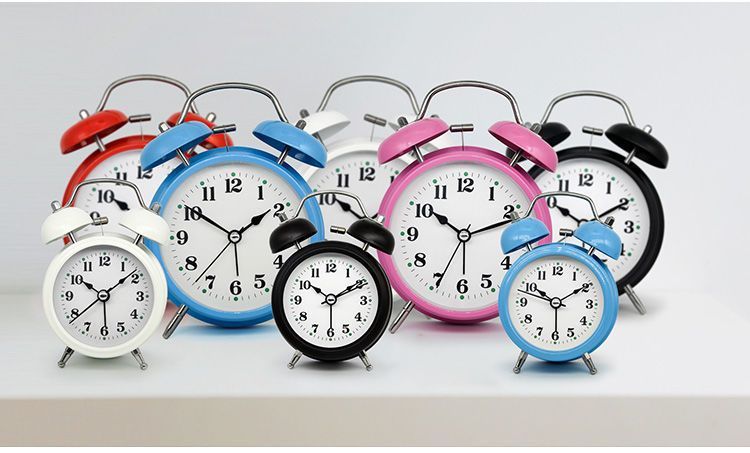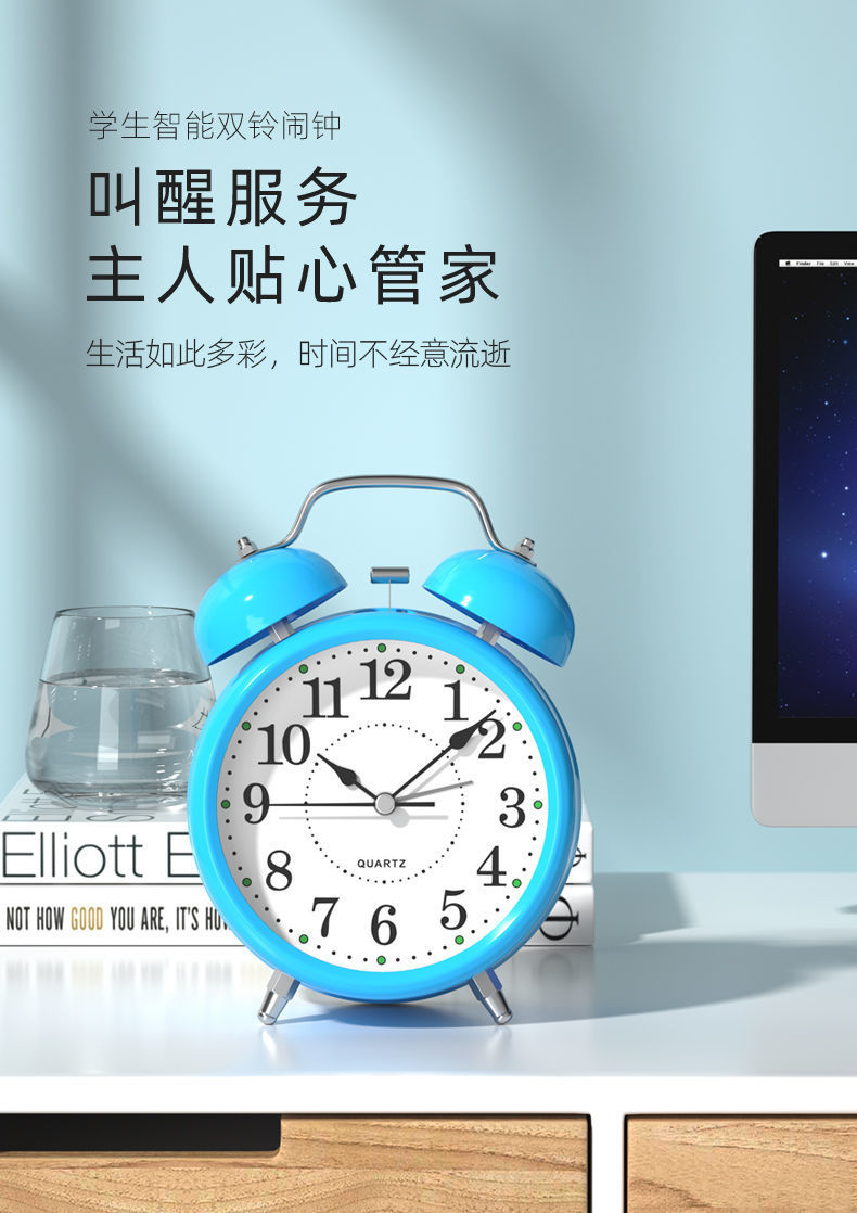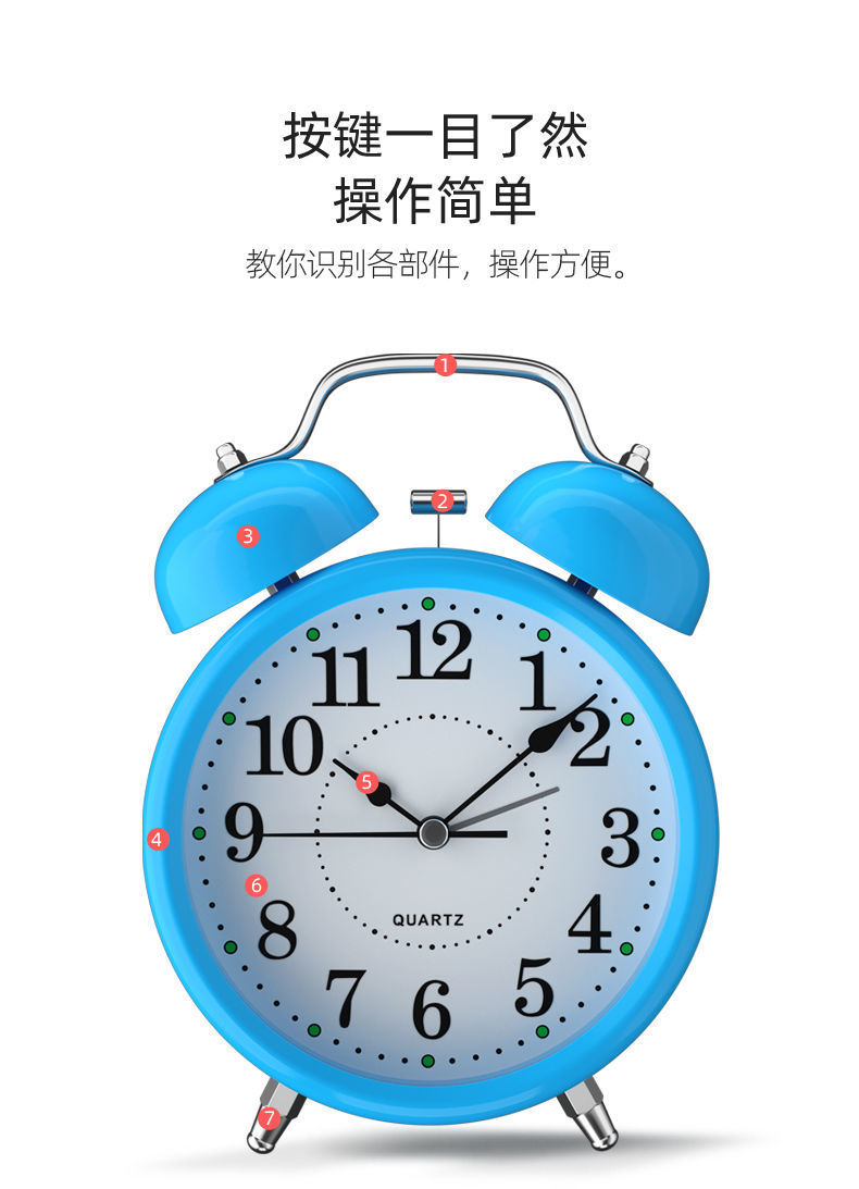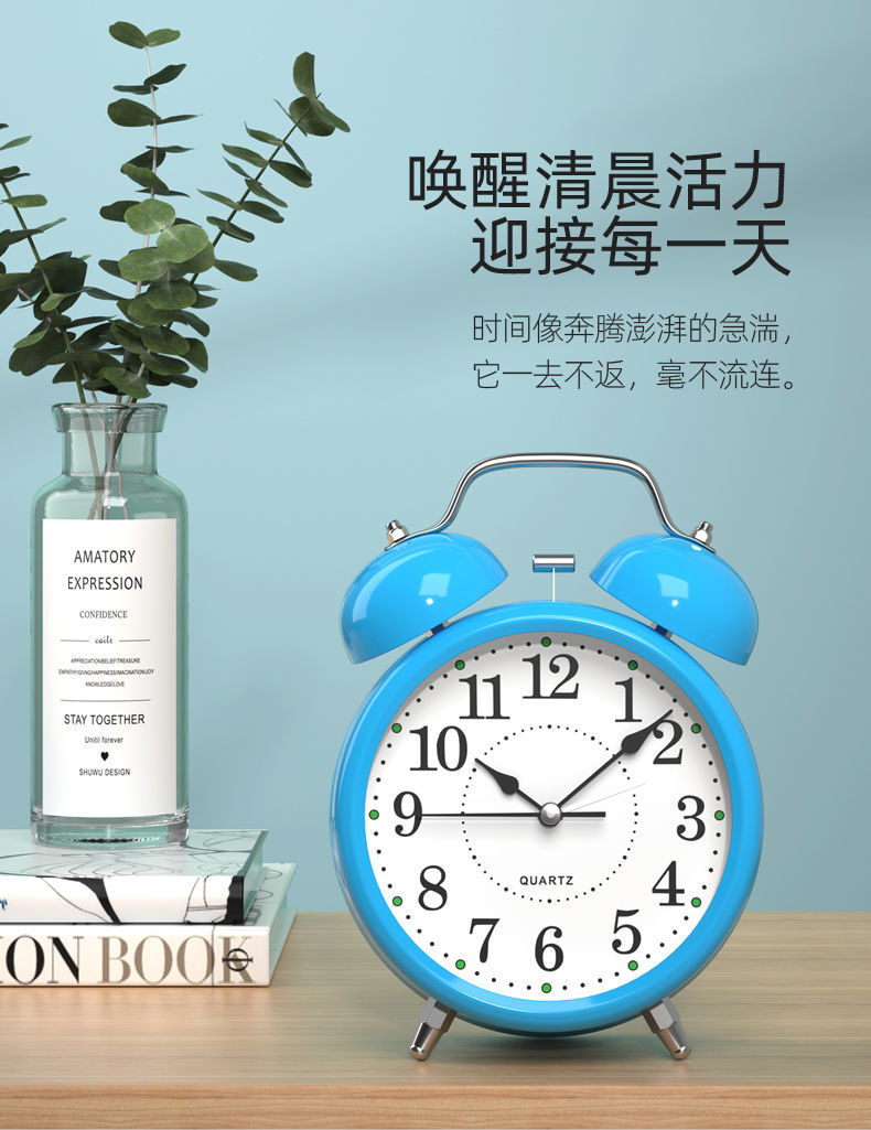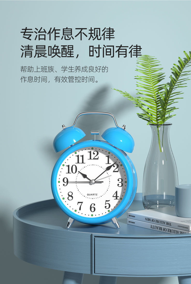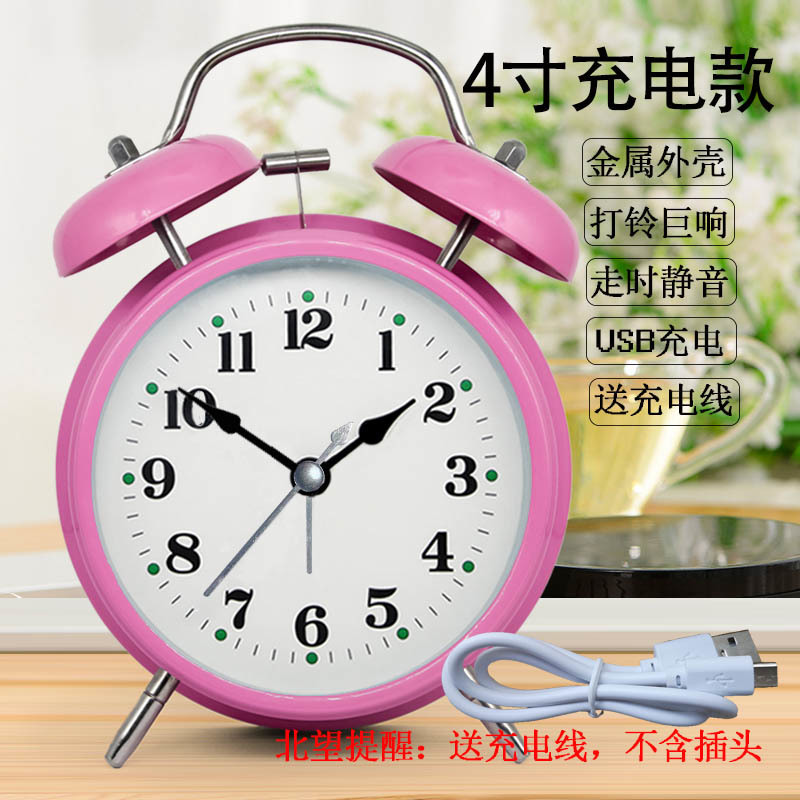 금속 벨 알람 시계 창조적 인 조용한 학생 침대 머리 게으른 야간 조명 간단한 창조적 인 작은 알람 미터 슈퍼 조용한스토어 가기