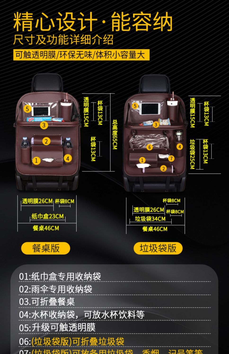 Z1L 자동차 좌석 다시 저장 가방 매달려 가방 자동차 내부 좌석 다시 식사 테이블 보드 백레스트 스토리지 랙 실용적인 제품