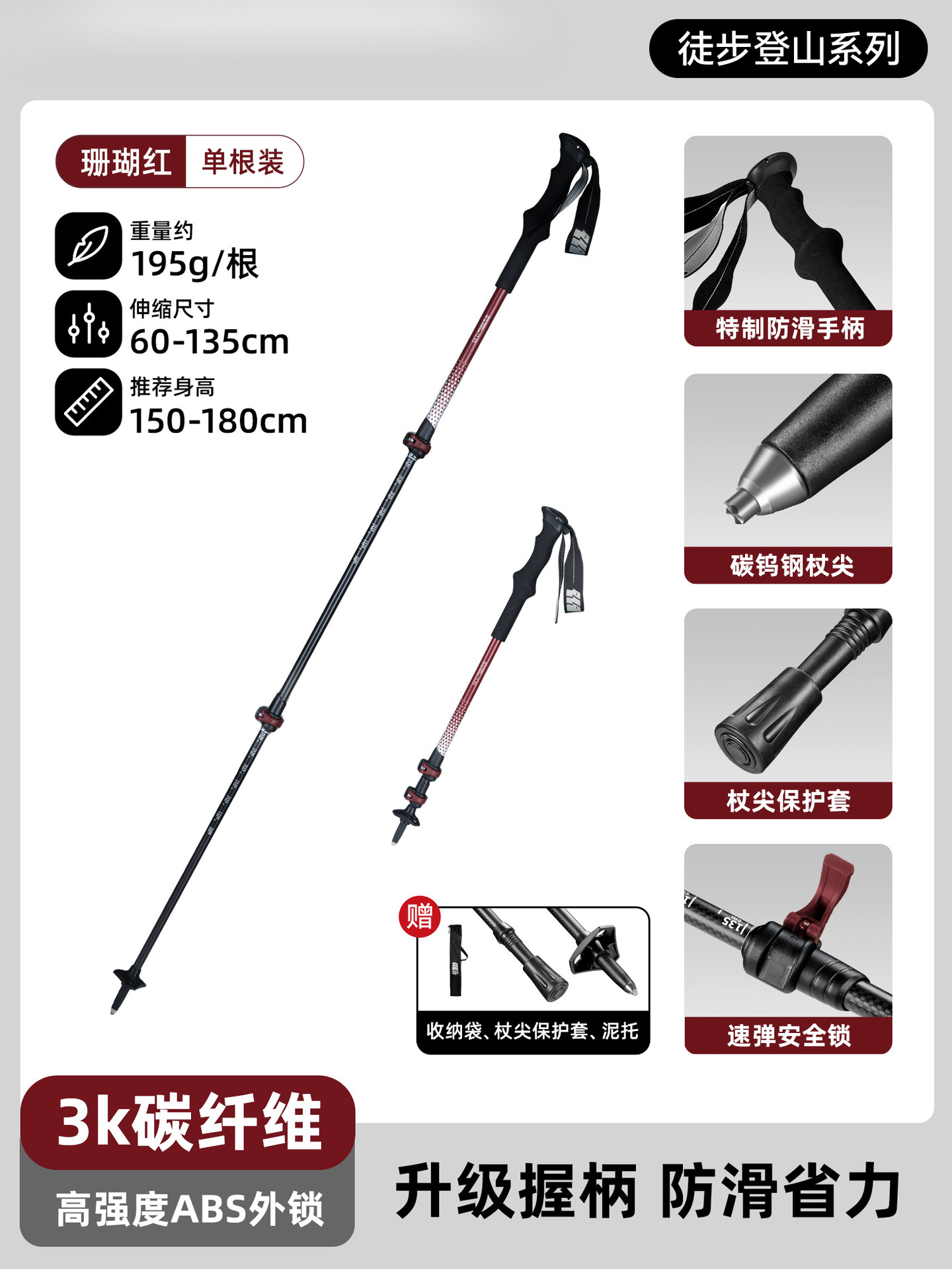 • 195g [3K 탄소섬유-망원경형] 코랄레드