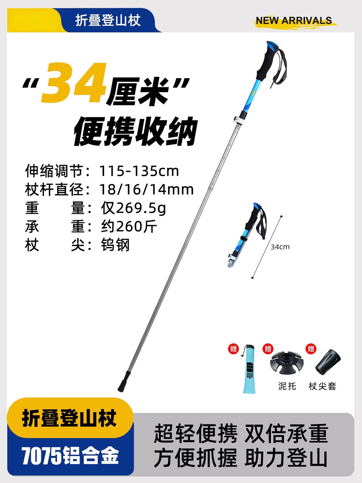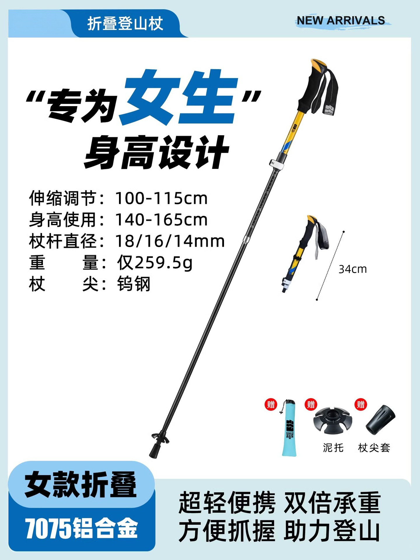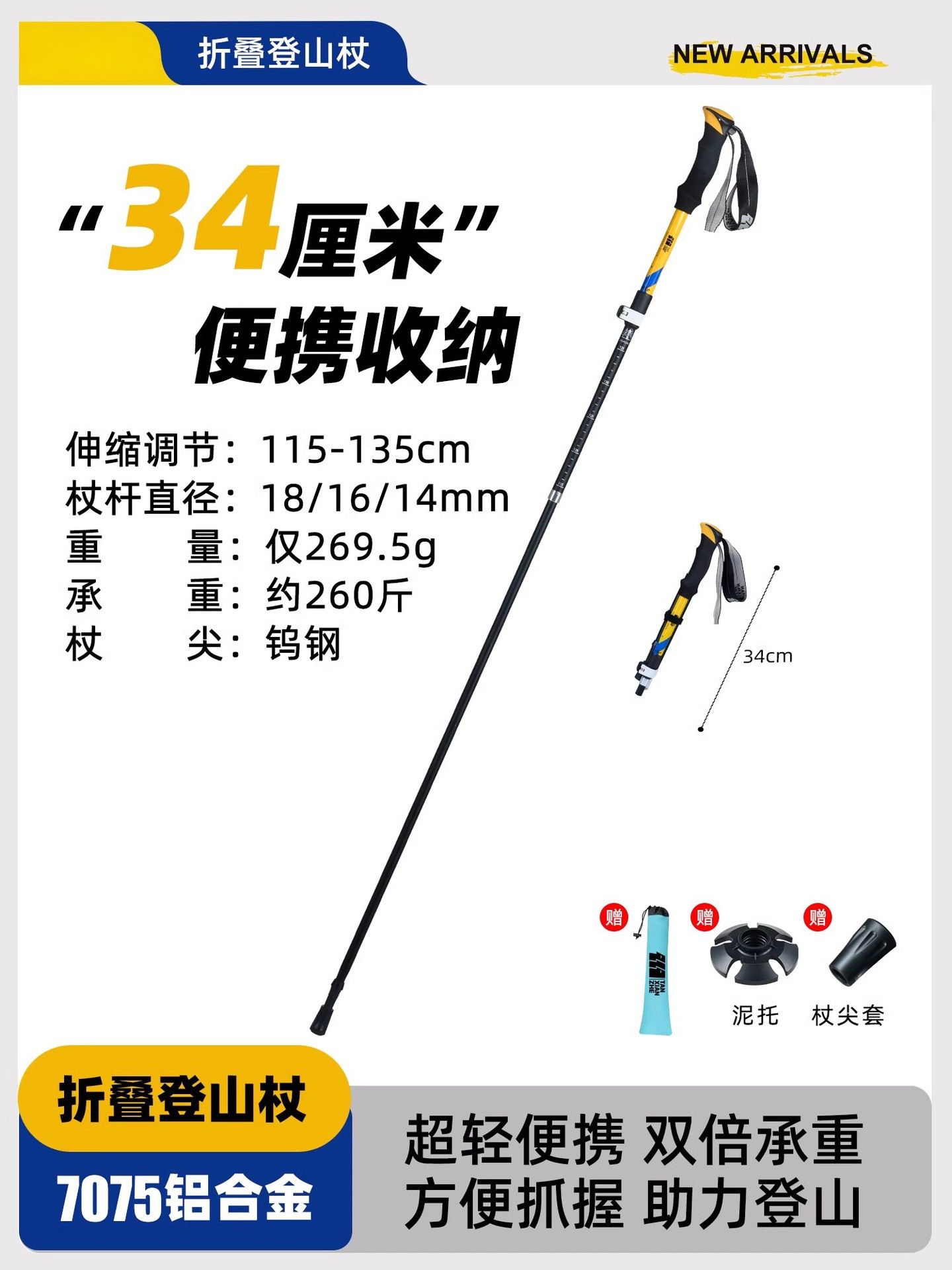 • 강화된 접이식 모델 [7075 알루미늄 합금] 아름다운 노란색 (신장 165-180cm에 적용 가능).