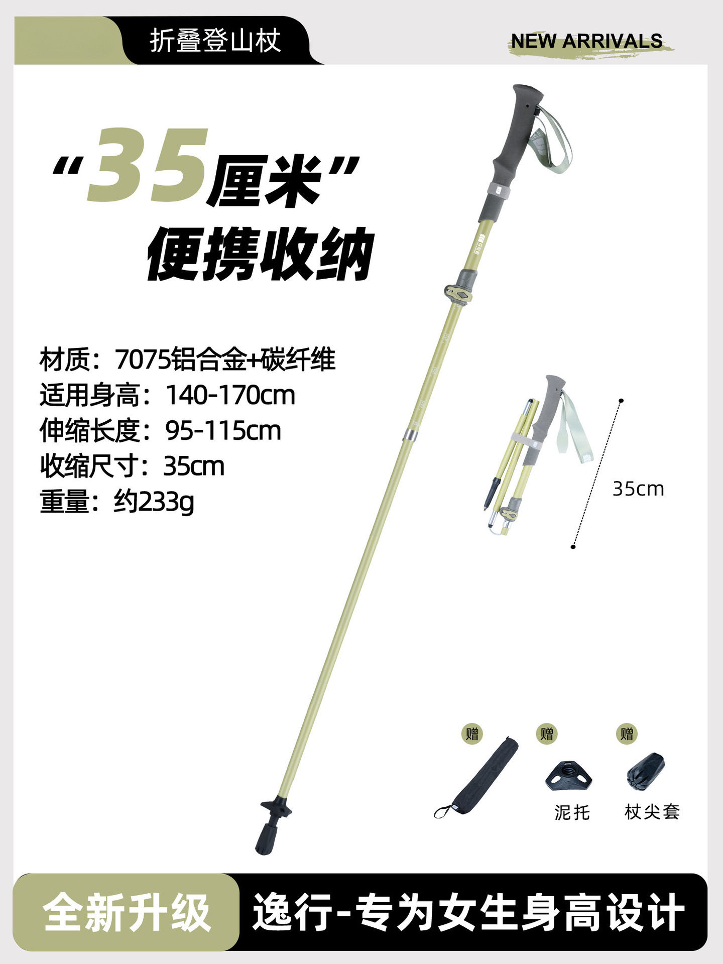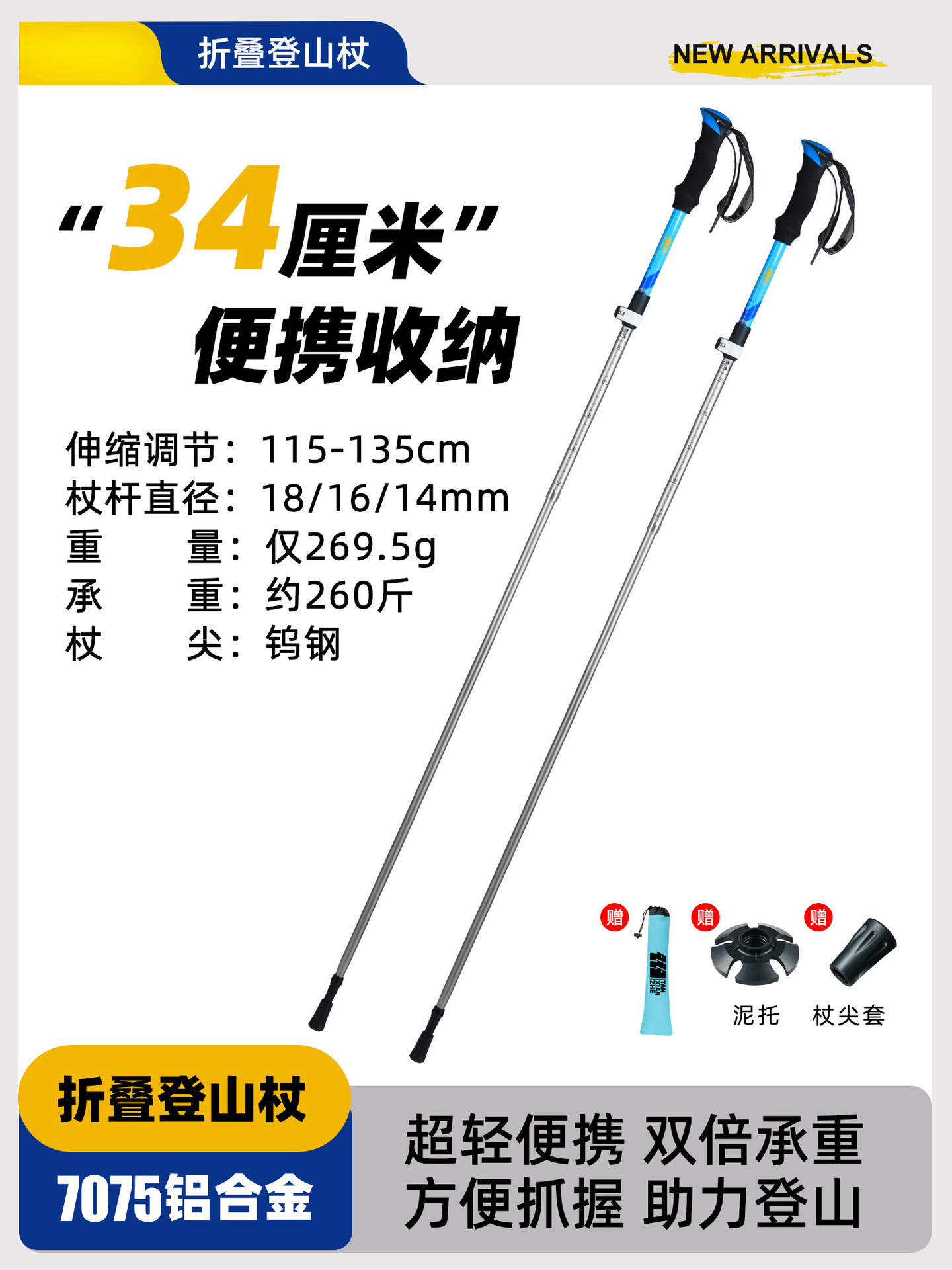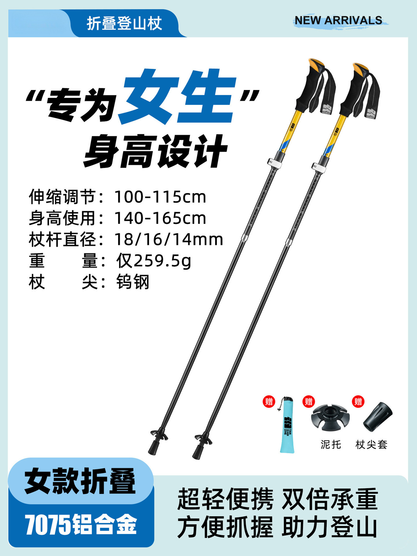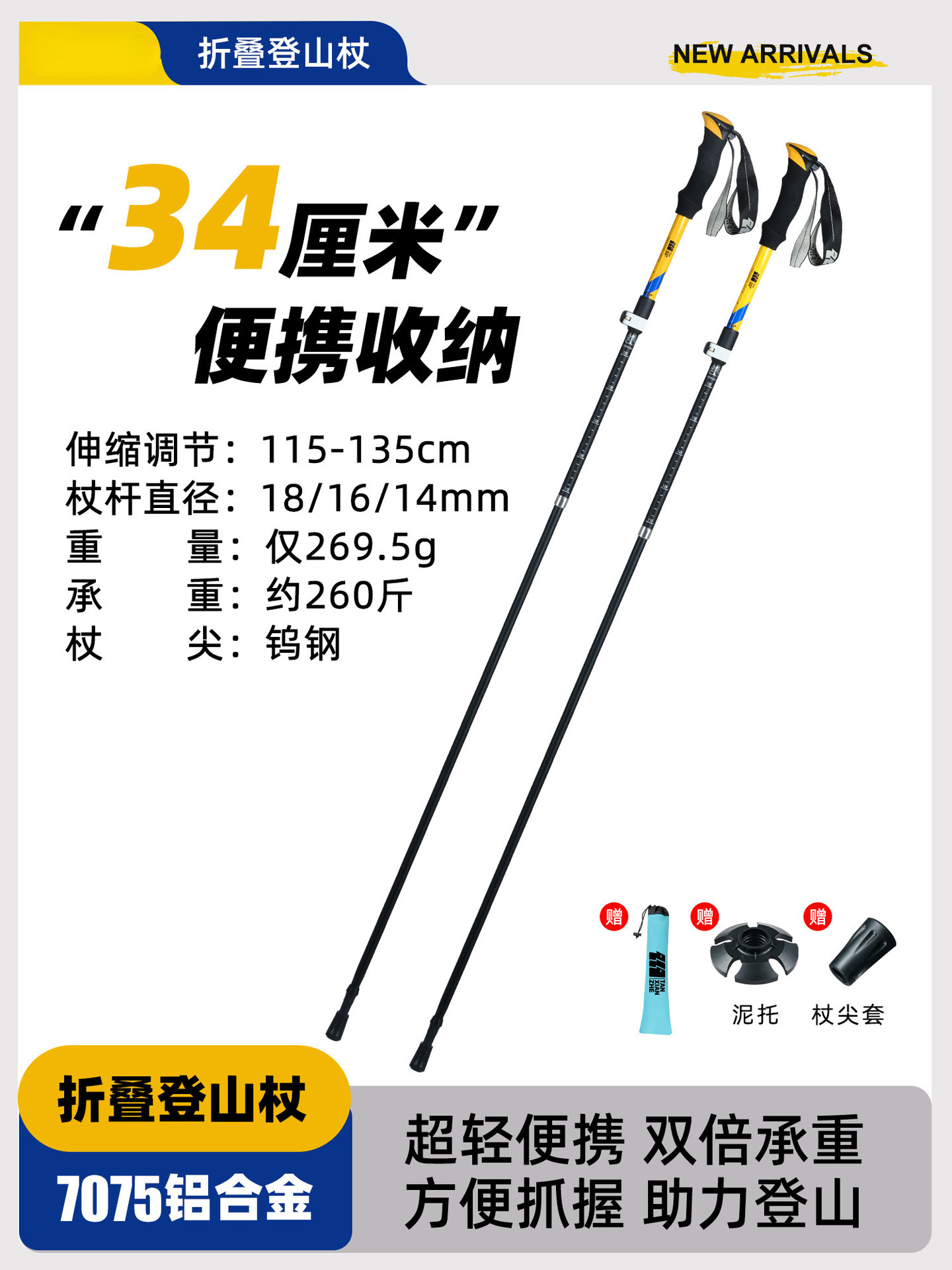 • 강화된 접이식 모델 [7075 알루미늄 합금] 아름다운 노란색 (신장 165-180cm에 적용 가능).