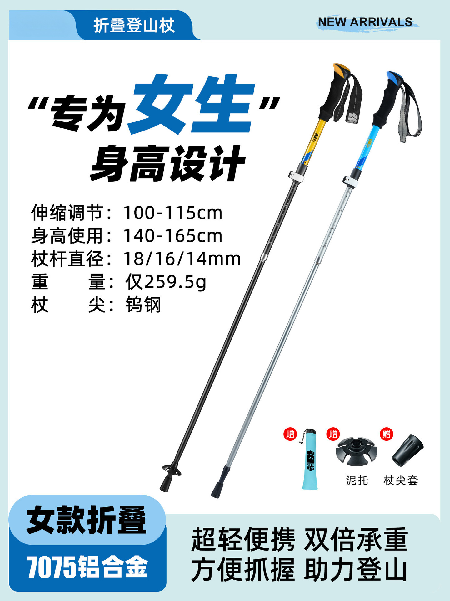 • 강화 접이식 모델 [7075 알루미늄 합금] 스모크 블루(신장 165-180cm에 적용 가능).