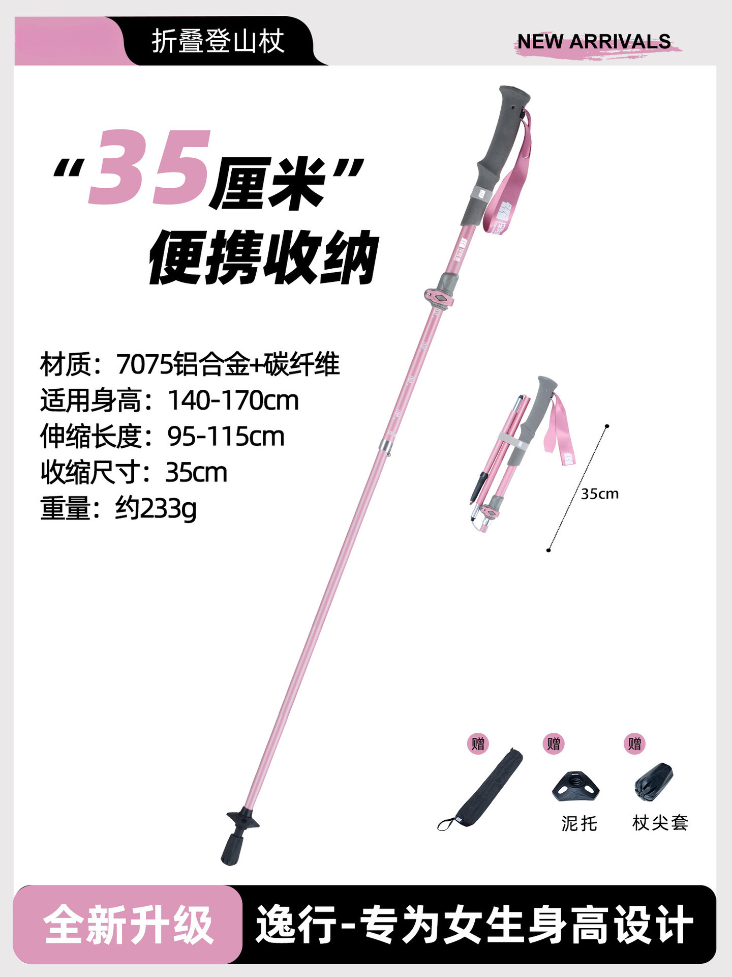 • 【⭐풀림 방지 디자인 -⭐】다크 핑크 [카본 플러스 알루미늄 접이식 모델] (신장 140cm-170cm용)