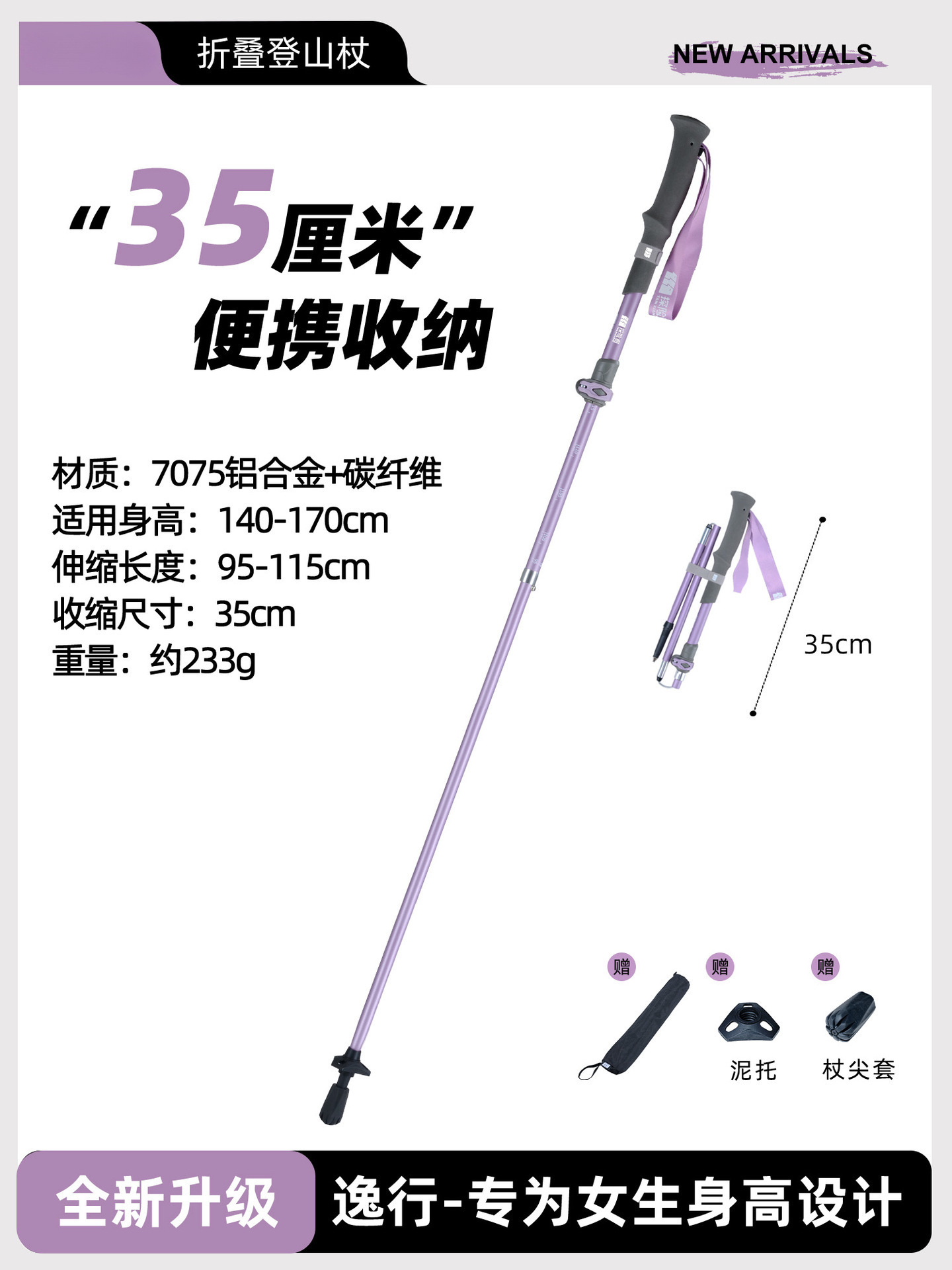 • 【⭐풀림 방지 디자인 -⭐] 등나무 퍼플 [카본 플러스 알루미늄 접이식 모델] (신장 140cm-170cm용)