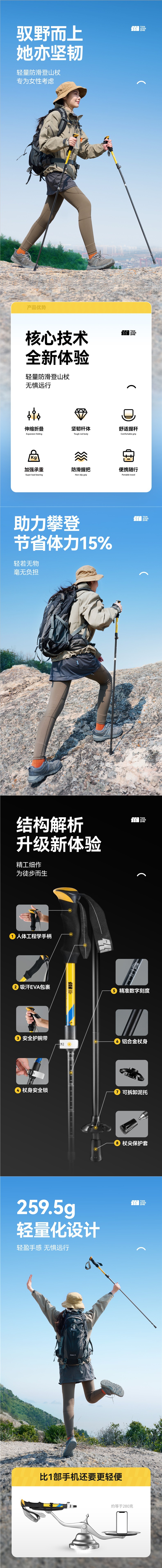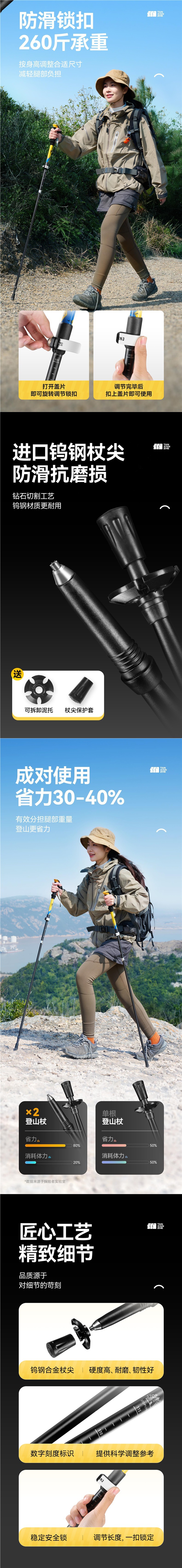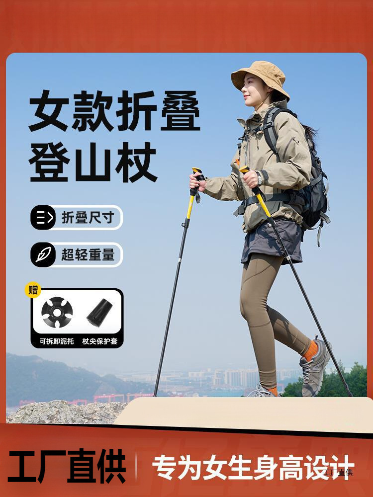 탄소 섬유 폴딩 클라이밍 스틱 여성 워킹 스틱 전문 야외 하이킹 장비 여성 클라이밍 탄소 텅스텐 스틸 Shihuixia