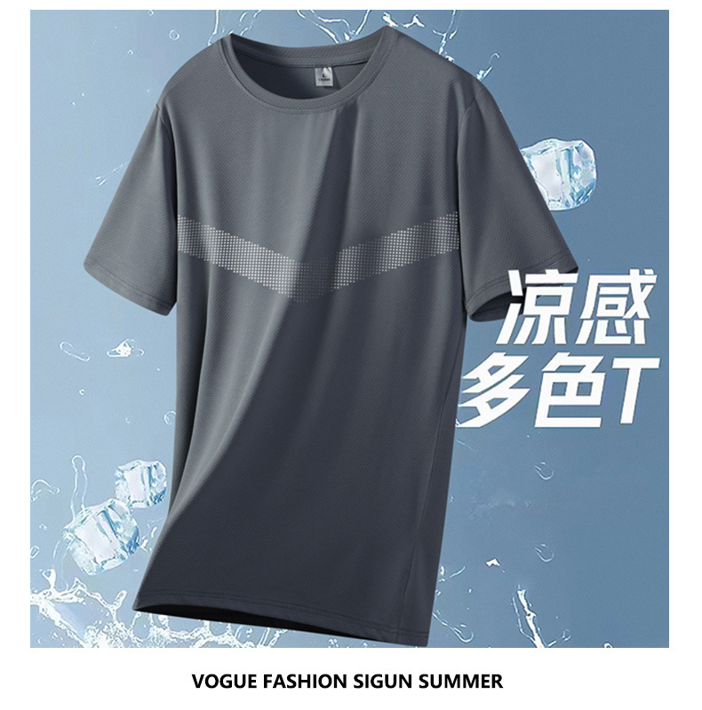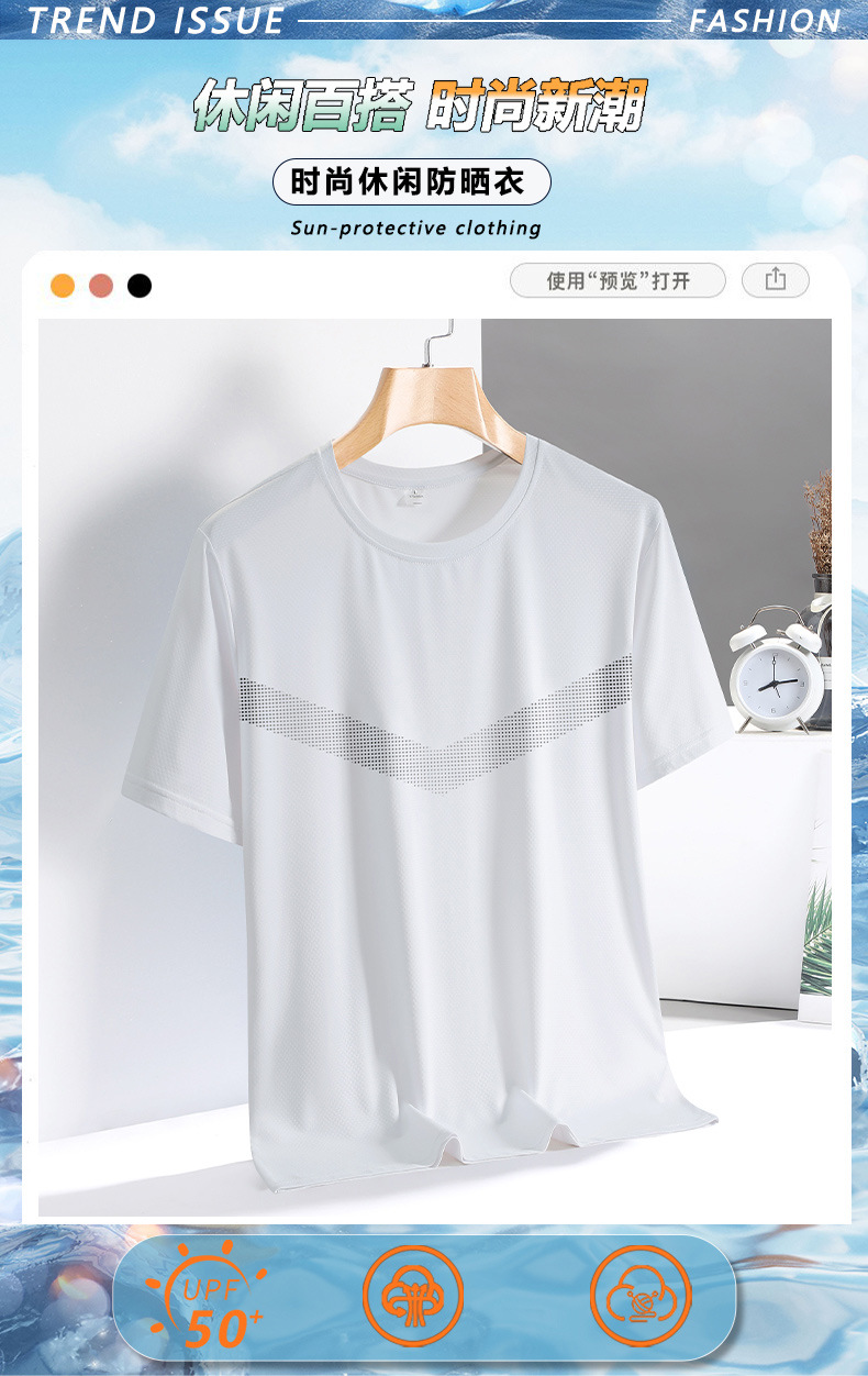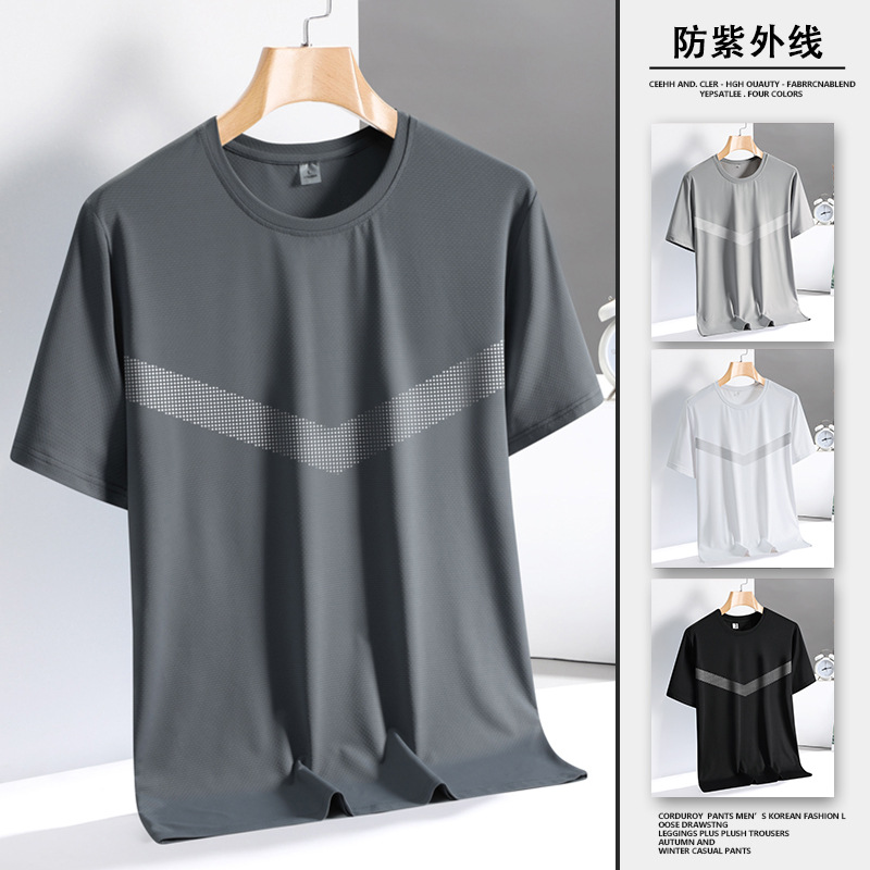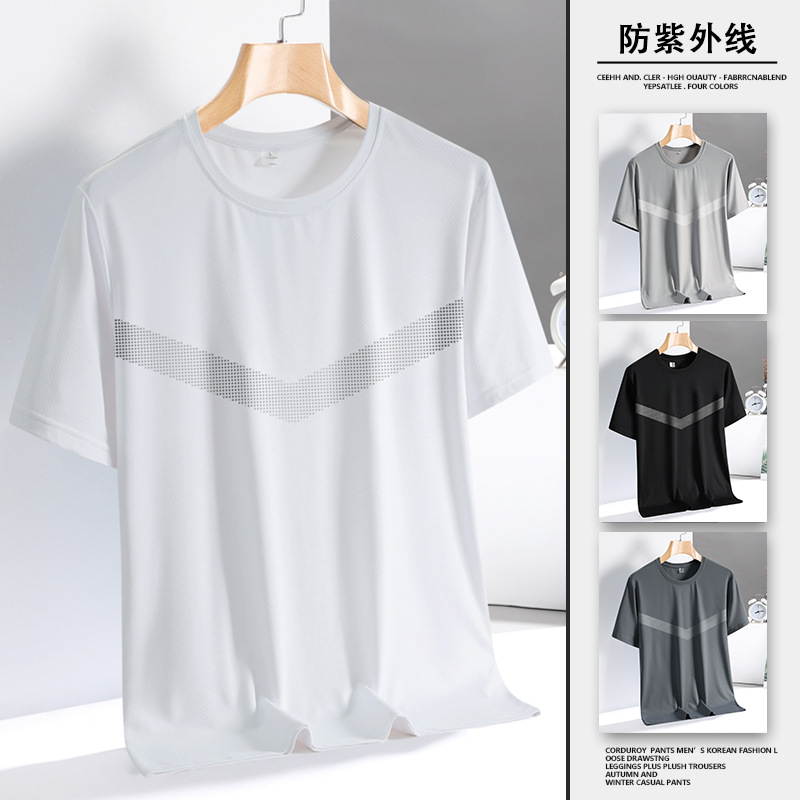 2025 새로운 안티 자외선 남성 스포츠 아이스 실크 반팔 빠른 건조 옷 남자의 경량 통기성 여름 달리기 태양 보호 T