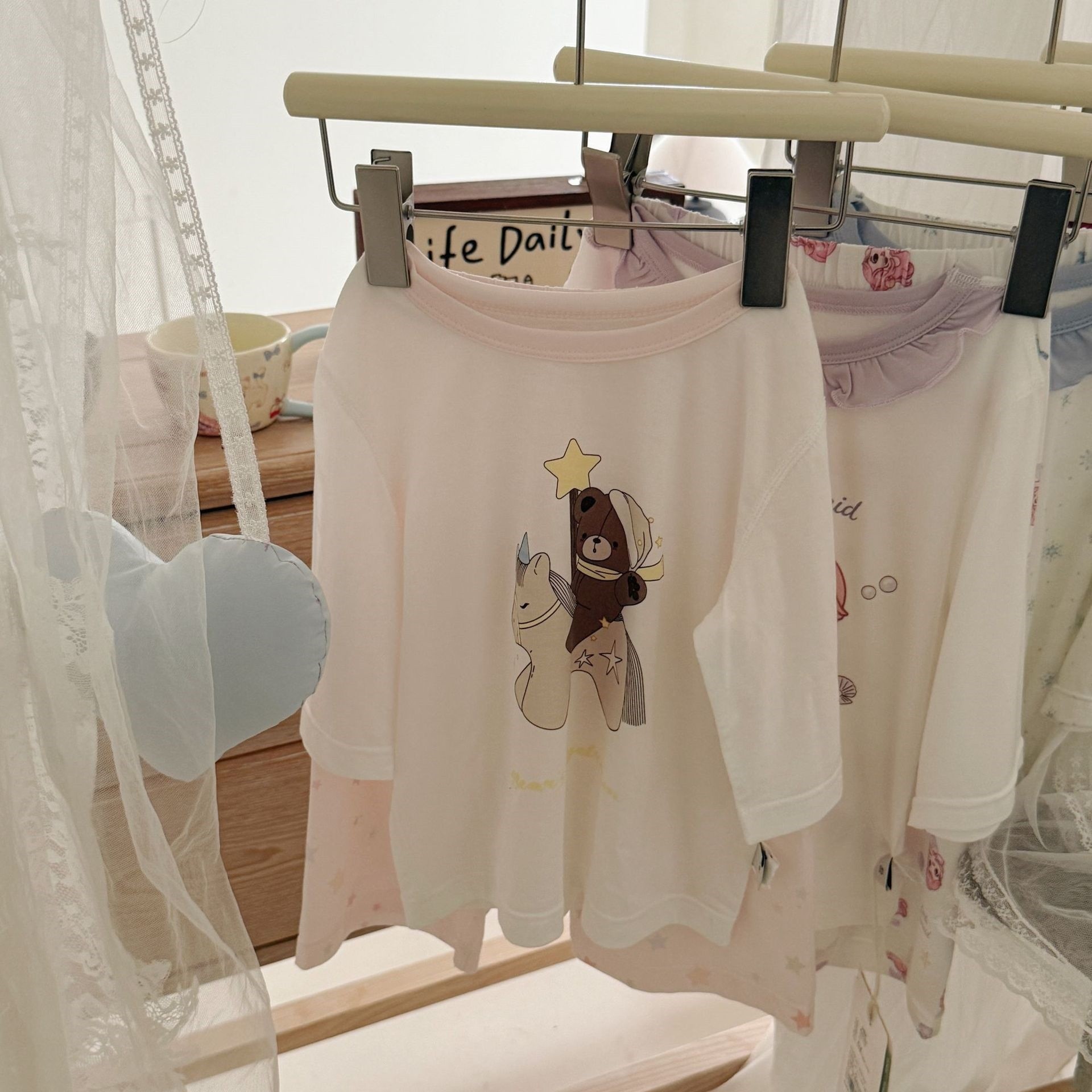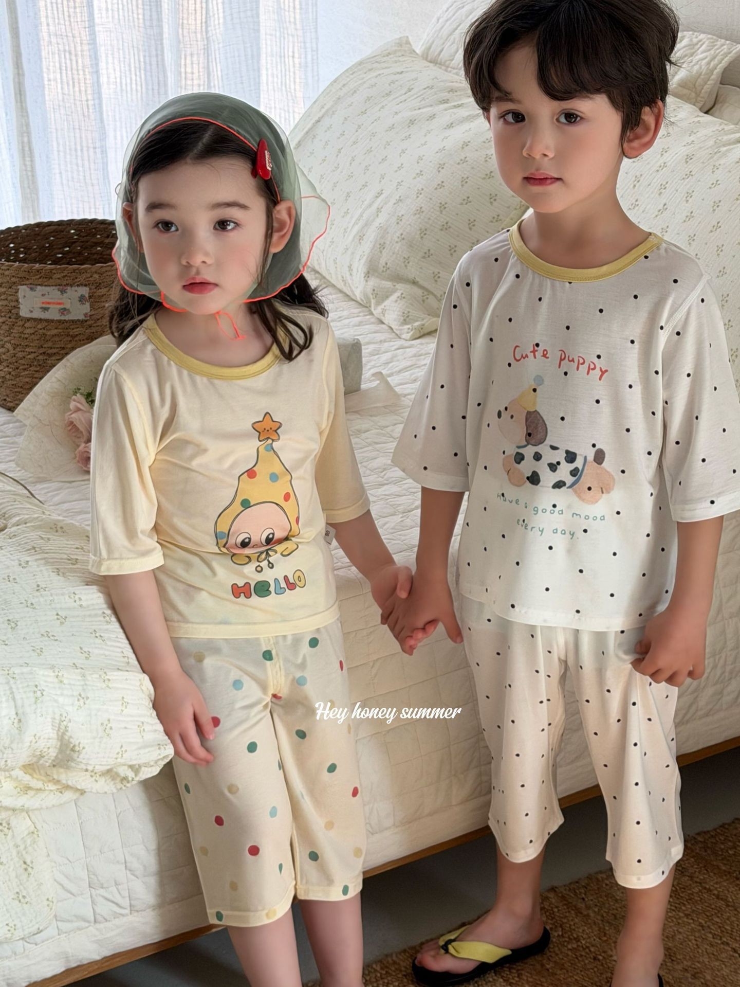 헤이 스윗하트 26 여름 아동용 모달 텐셀 홈웨어 세트 남아 여아용 시원한 반팔 잠옷 세트스토어 가기