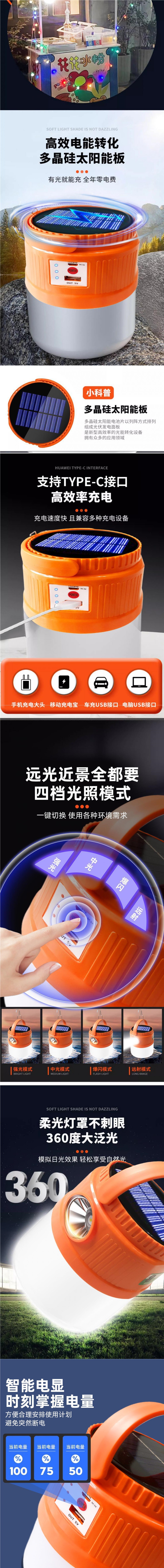 • 상위 구성 - 99800w, 배터리 수명 600시간, 듀얼 광원 + 태양광 + 보조 배터리 기능 +