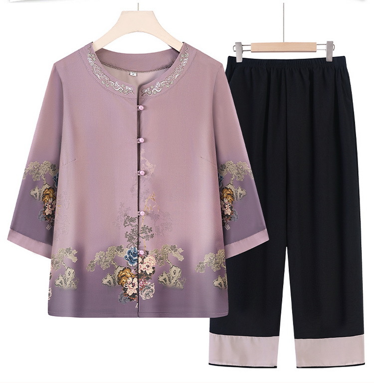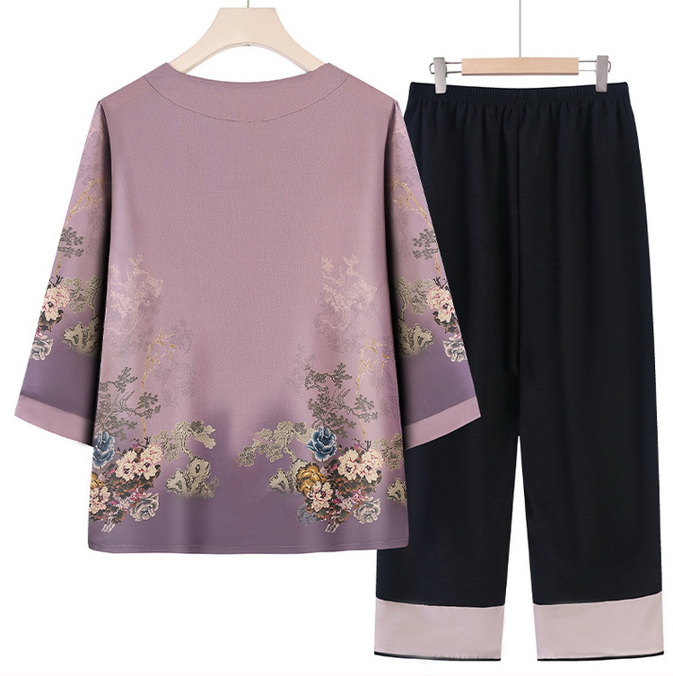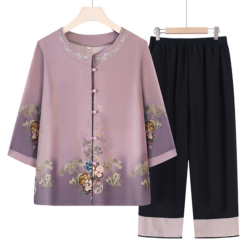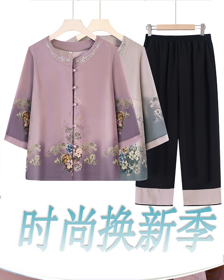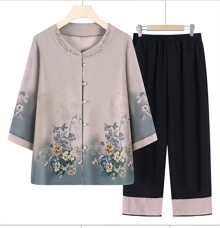 할머니 여름 원피스 세트 중년 및 노인 여성 원피스 어머니의 7 점 소매 투피스 세트 70 세 레이디 여름 루스 카디건