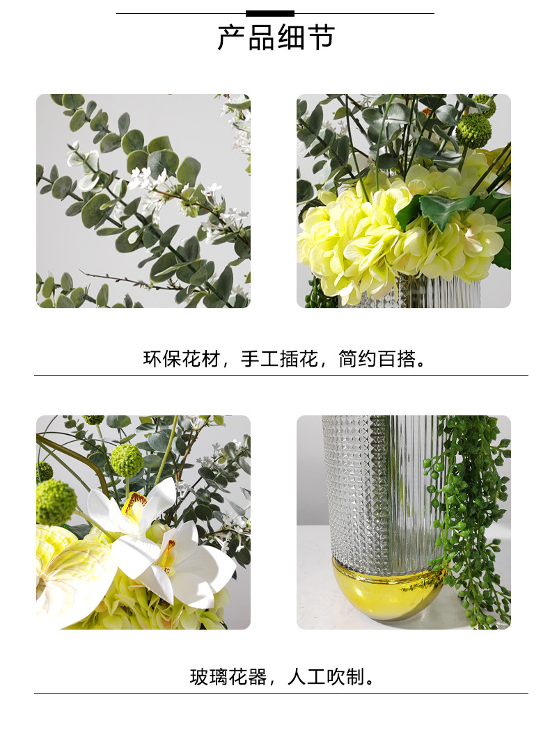 노르딕 엔트리 럭셔리 양각 다이아몬드 패턴 금도금베이스 유리 꽃병 꽃-거실 식탁 장식 시뮬레이션 꽃 장식품스토어 가기