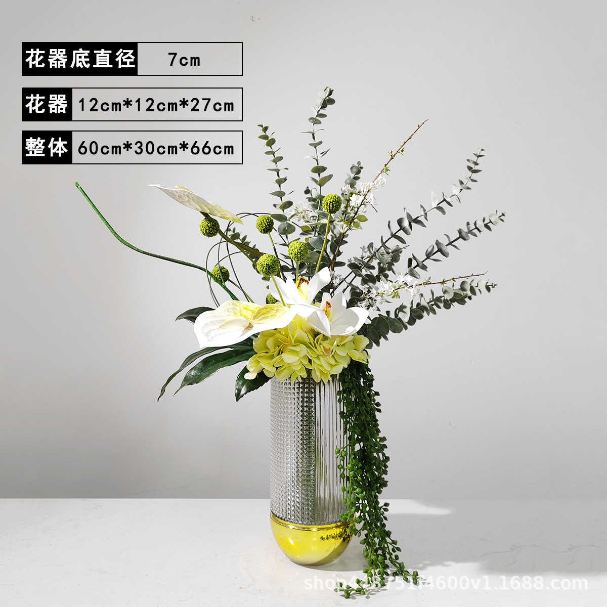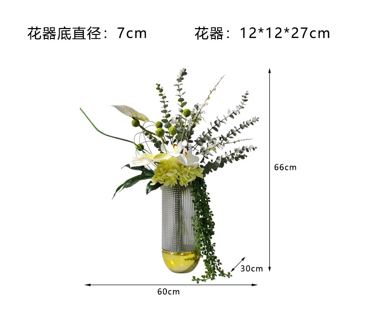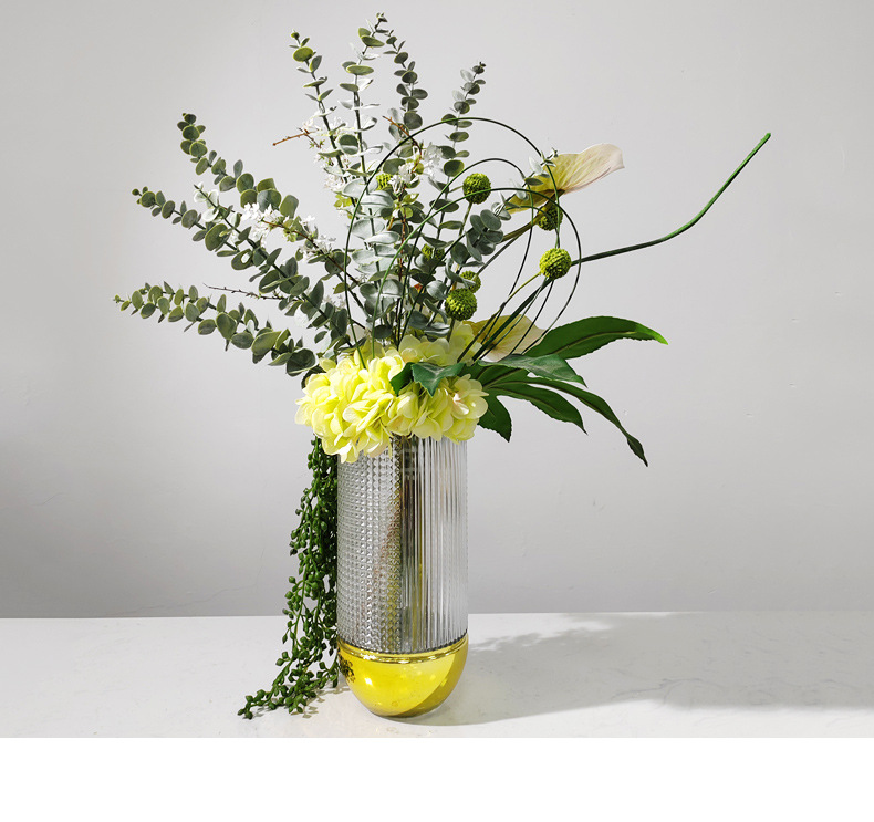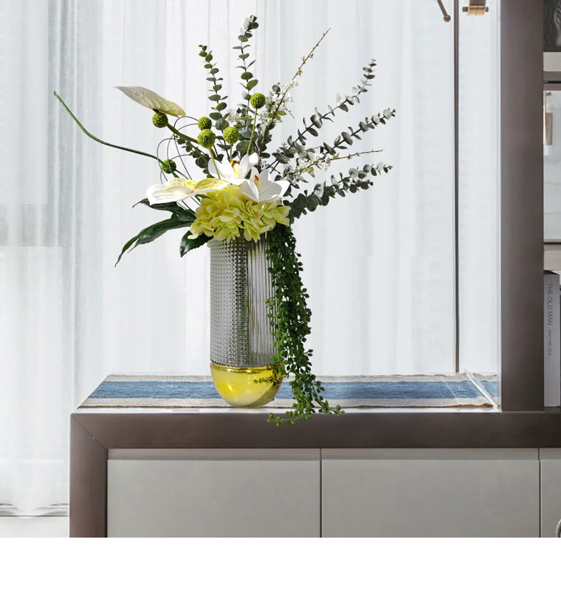 노르딕 엔트리 럭셔리 양각 다이아몬드 패턴 금도금베이스 유리 꽃병 꽃-거실 식탁 장식 시뮬레이션 꽃 장식품