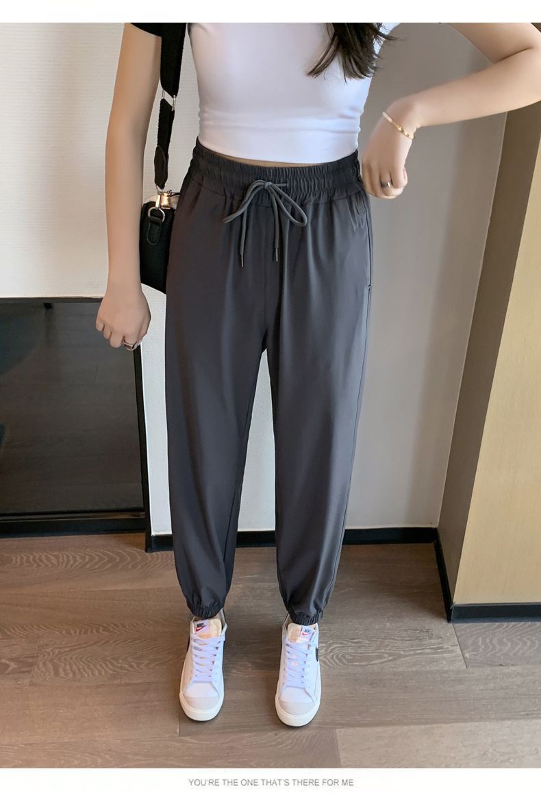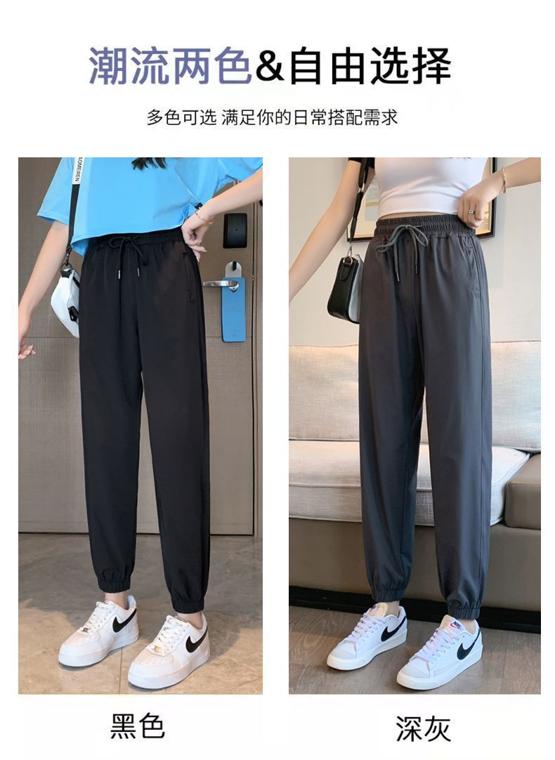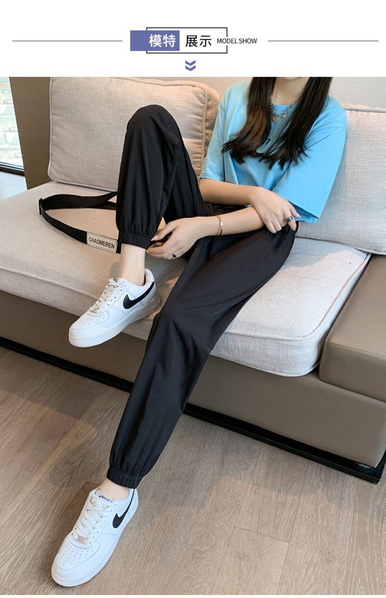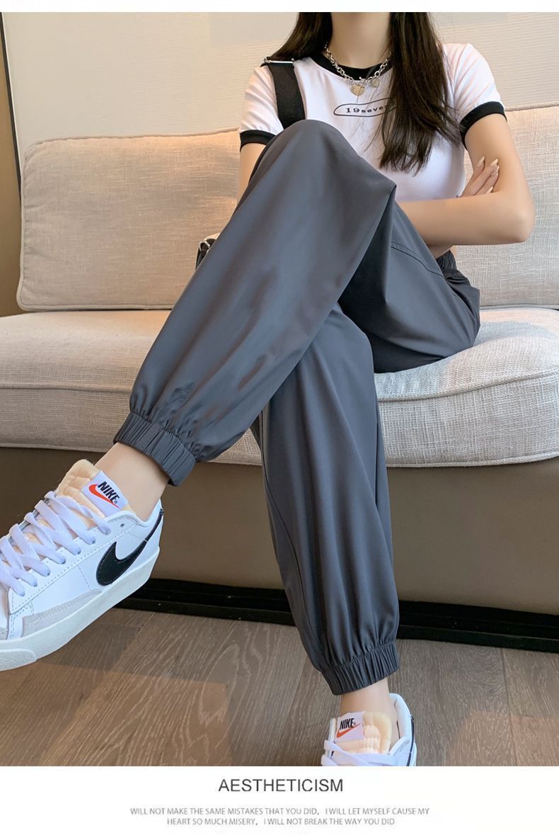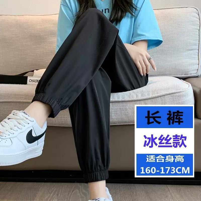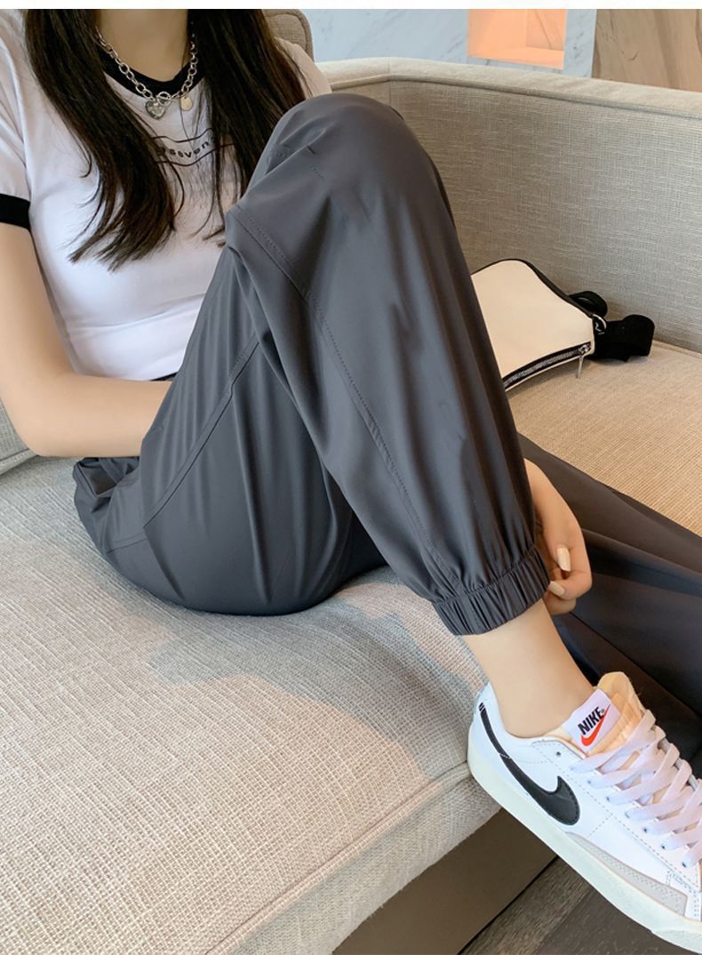 스포츠 바지 여자 아이스 실크 여름 얇은 운동복 느슨한 캐주얼 바지 빠른 건조 블루머스 높은 허리 슬리밍 쿨 바지