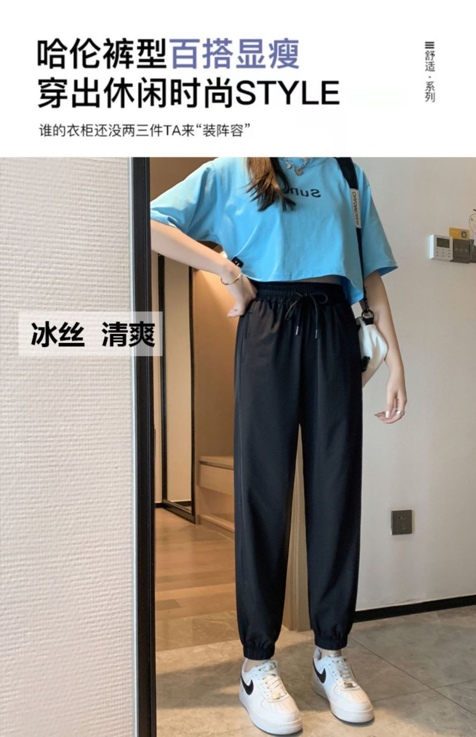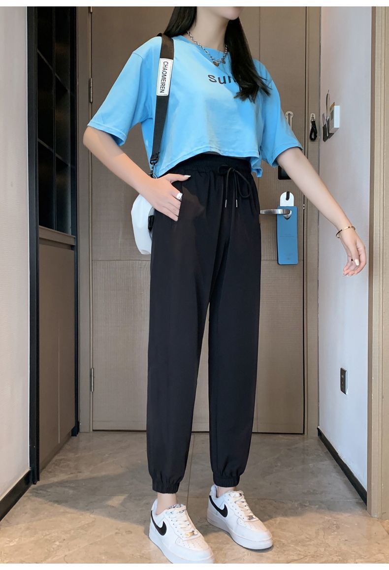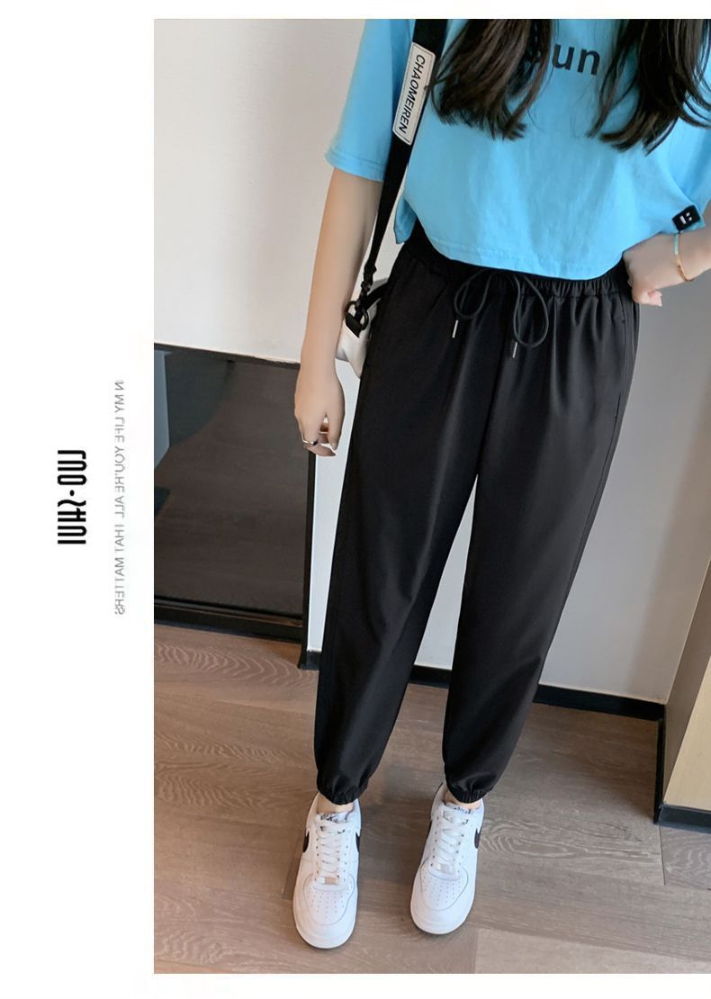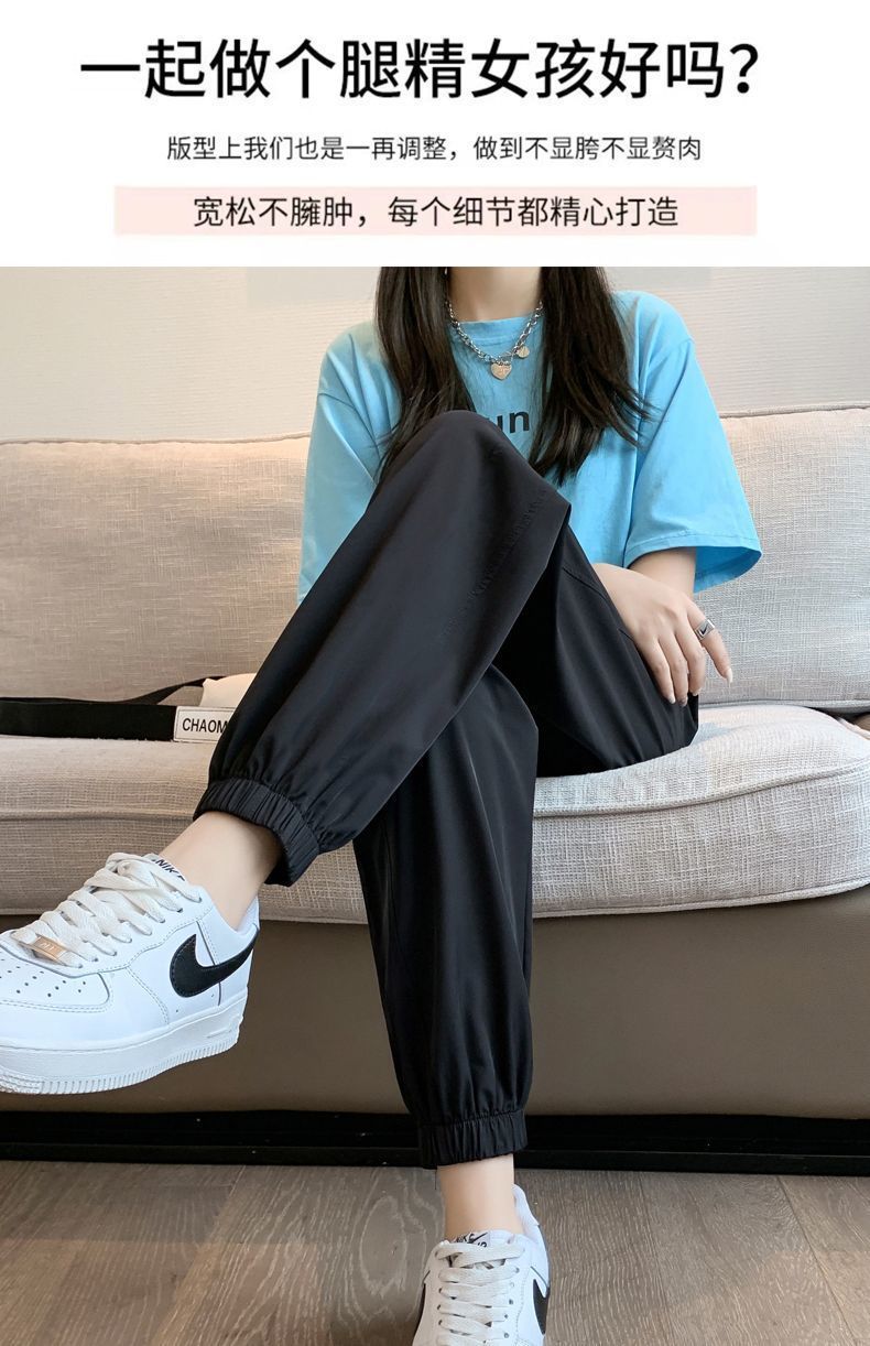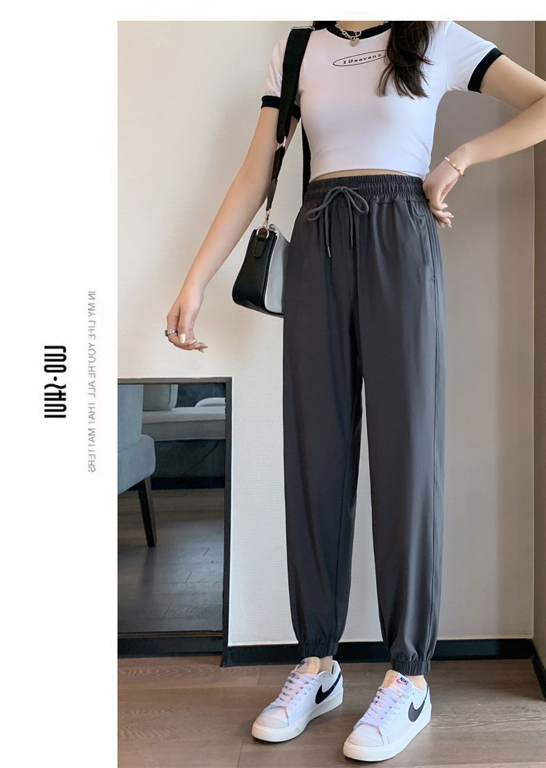 스포츠 바지 여자 아이스 실크 여름 얇은 운동복 느슨한 캐주얼 바지 빠른 건조 블루머스 높은 허리 슬리밍 쿨 바지