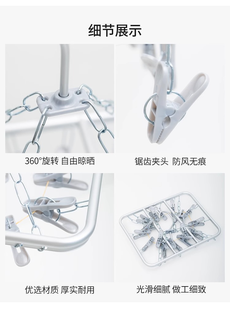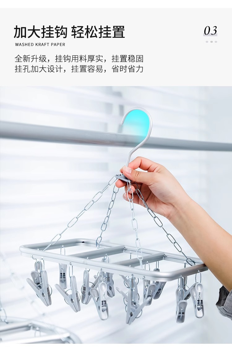 일본 AISEN 경량 미니 알루미늄 옷걸이 사각 속옷 양말 클립