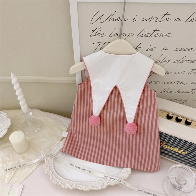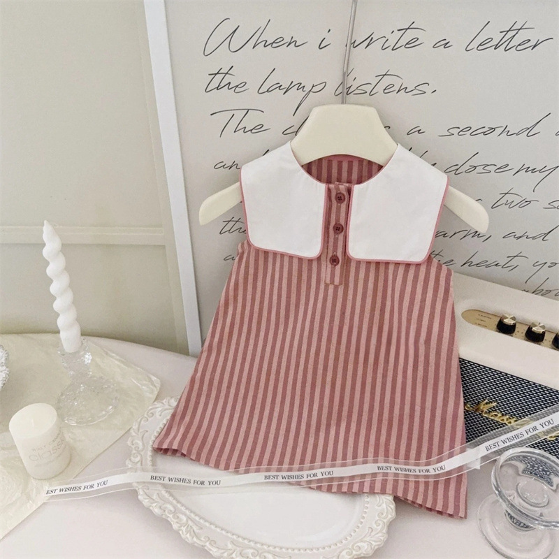 [리틀 솔티드 레몬] 너무 귀여워요! 여자 아기 라펠 볼 스트라이프 민소매 드레스 여름 신상 대학 스커트스토어 가기