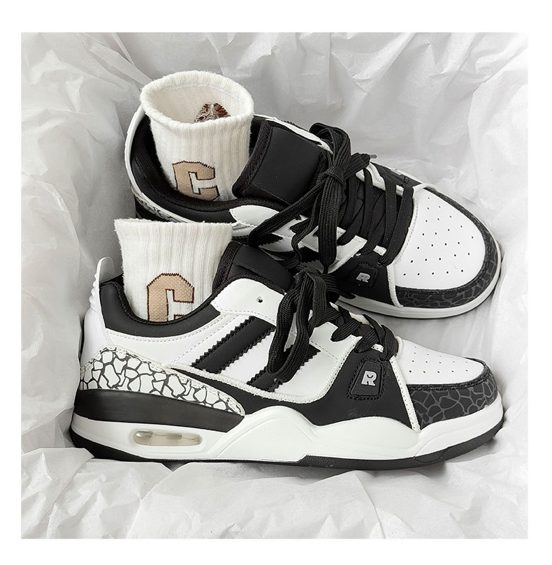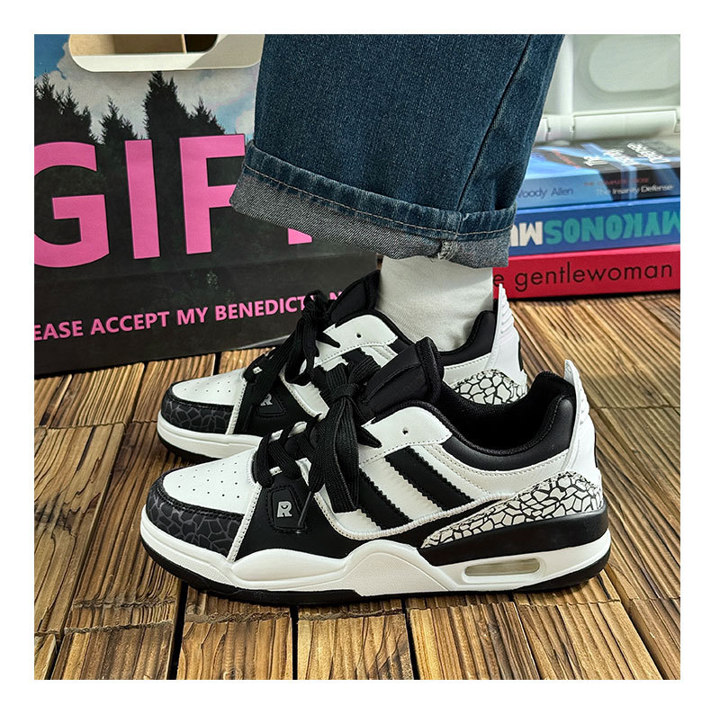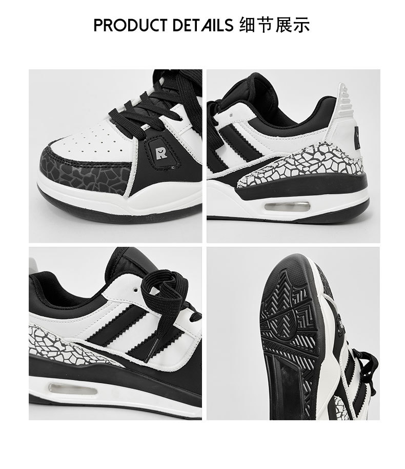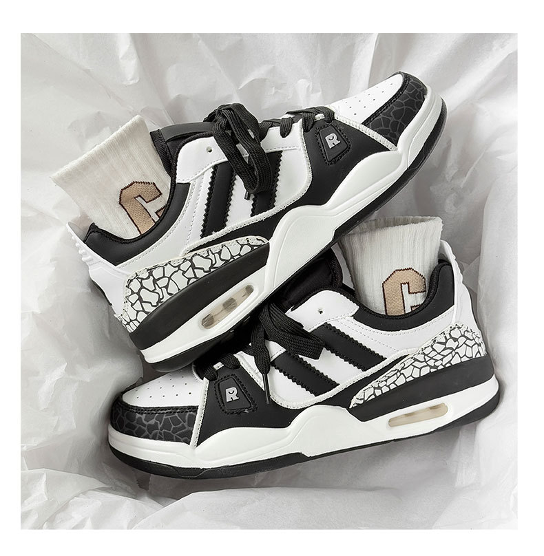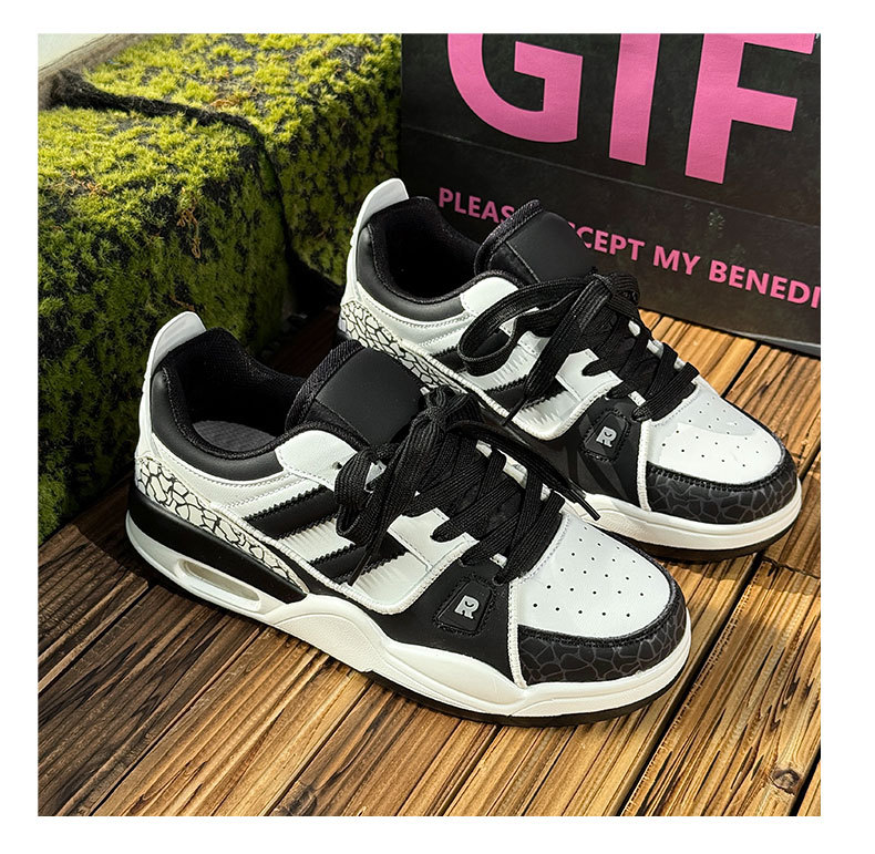 남자 신발 에어 쿠션 스포츠 보드 신발 남자 2025 폭발 학생 농구 유행 신발 두꺼운 단독 상승 커플의 흑백 레트로 신발