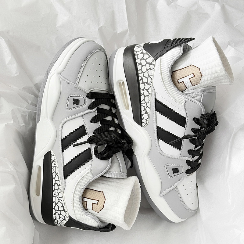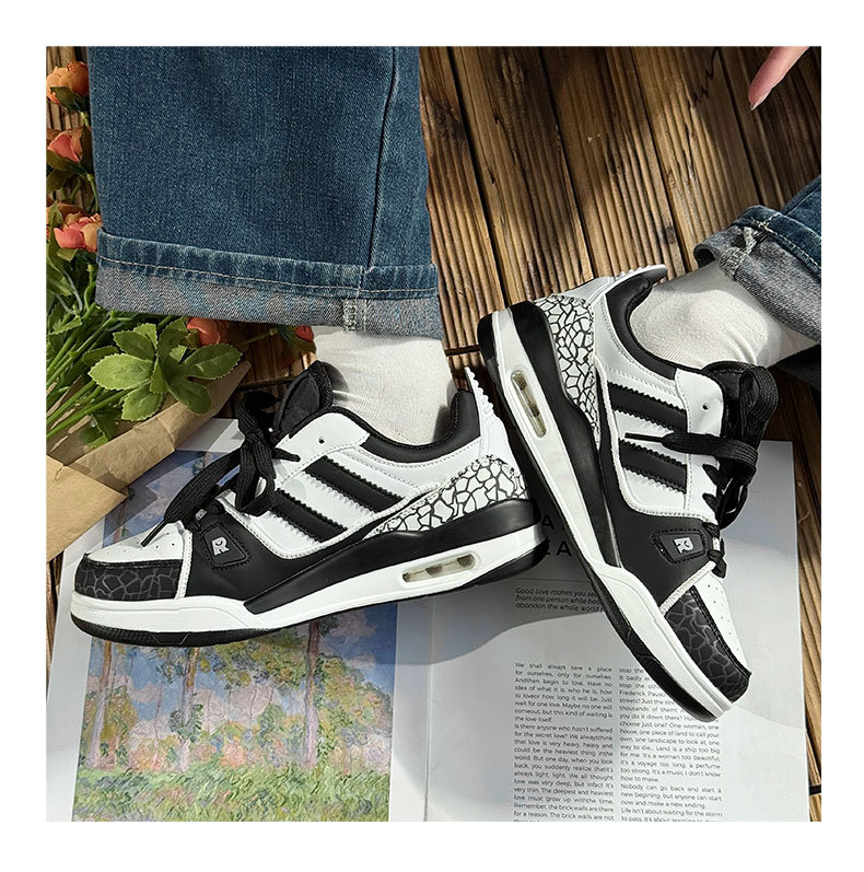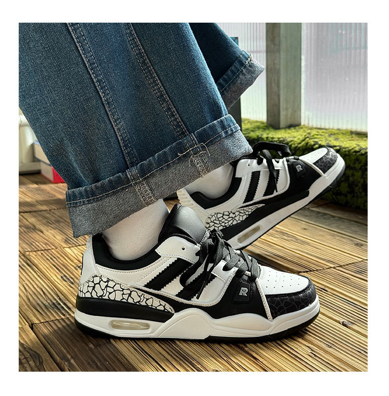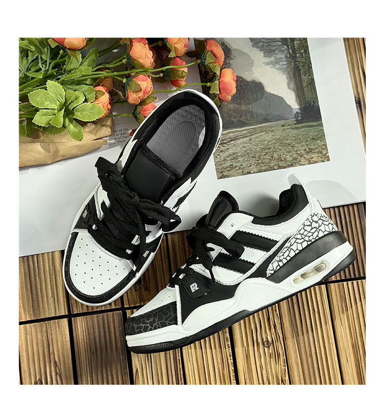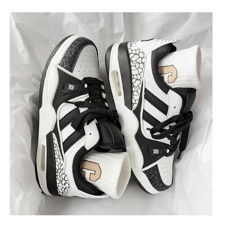 남자 신발 에어 쿠션 스포츠 보드 신발 남자 2025 폭발 학생 농구 유행 신발 두꺼운 단독 상승 커플의 흑백 레트로 신발