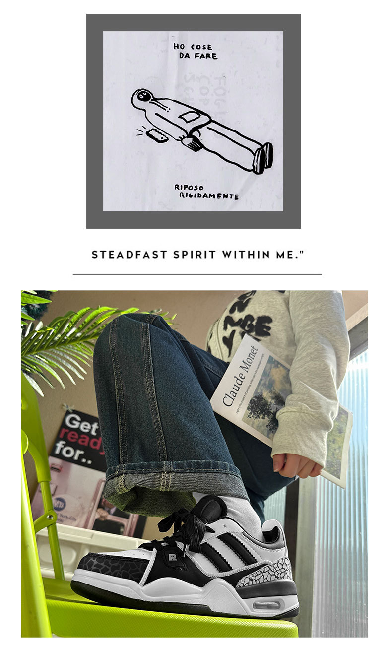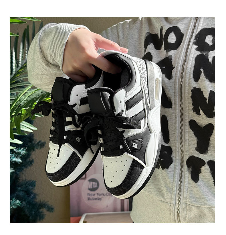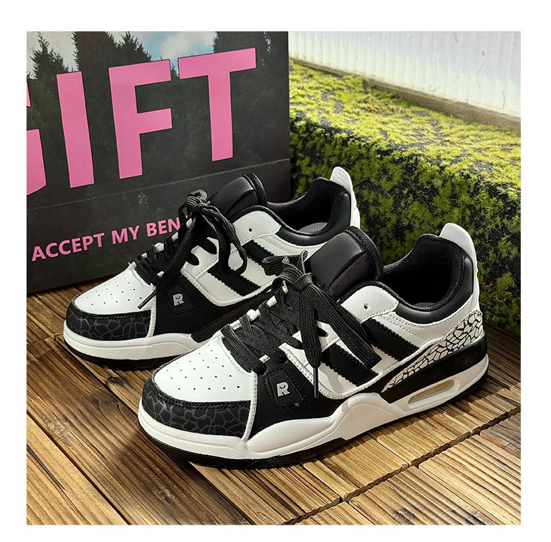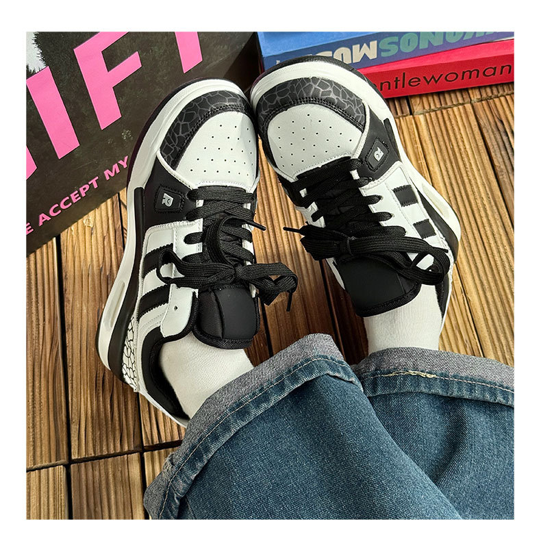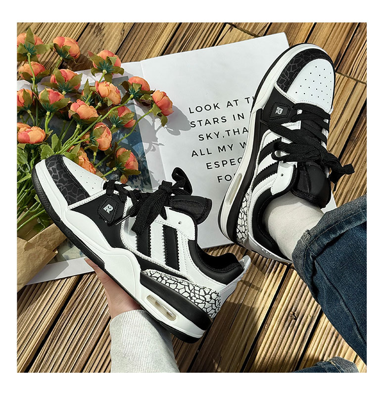 남자 신발 에어 쿠션 스포츠 보드 신발 남자 2025 폭발 학생 농구 유행 신발 두꺼운 단독 상승 커플의 흑백 레트로 신발스토어 가기
