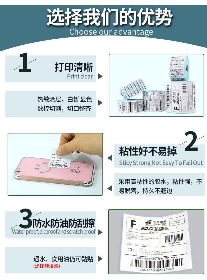 3 방지 열 라벨 종이 60*40 20 30 50 70 80 90 100 빈 접착제 종이 슈퍼마켓스토어 가기