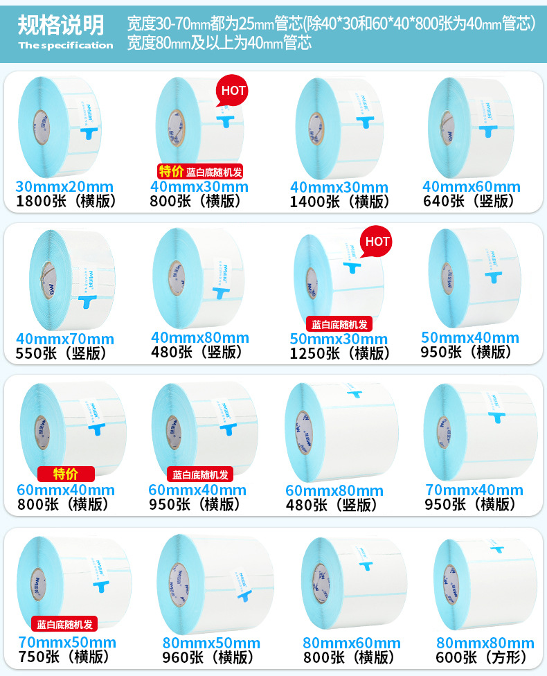 3 방지 열 라벨 종이 60*40 20 30 50 70 80 90 100 빈 접착제 종이 슈퍼마켓