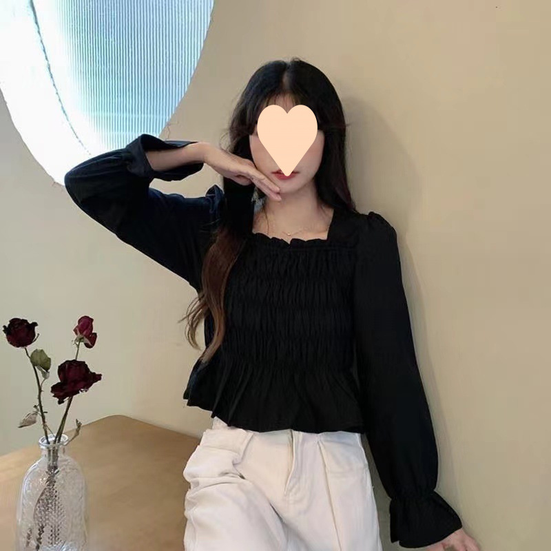 이른 가을 프랑스 뉴 스퀘어 칼라 셔츠 꽉 허리 패션 슬리밍 달콤한 아름다운 작은 셔츠 시대 감소 긴 소매 탑
