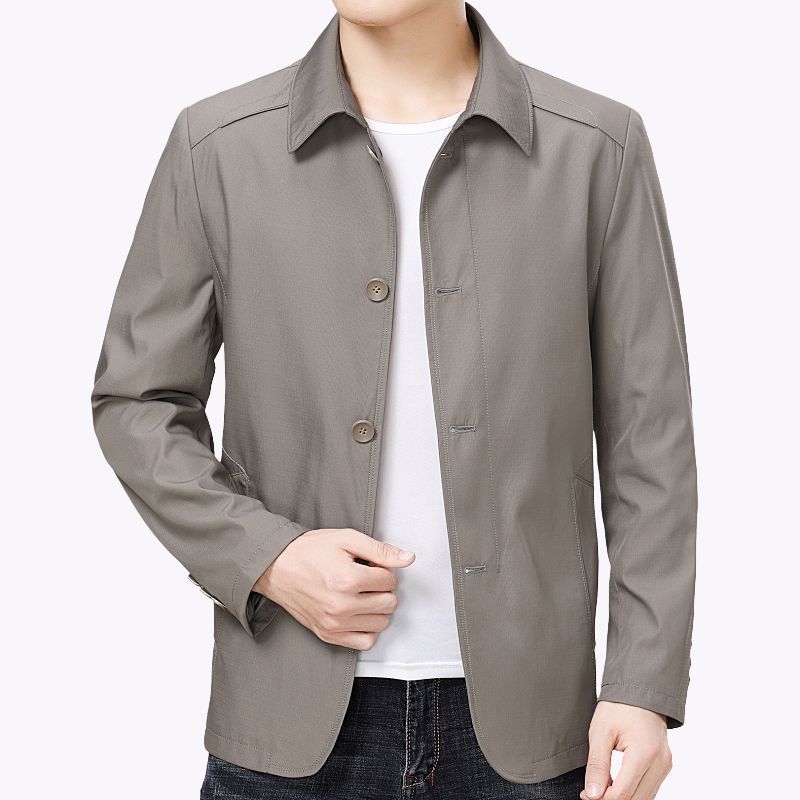 중년 남성 자켓 얇은 코트 중년 및 노인 사람들의 옷깃 아빠 버튼 캐주얼 여름 코트 봄과 가을