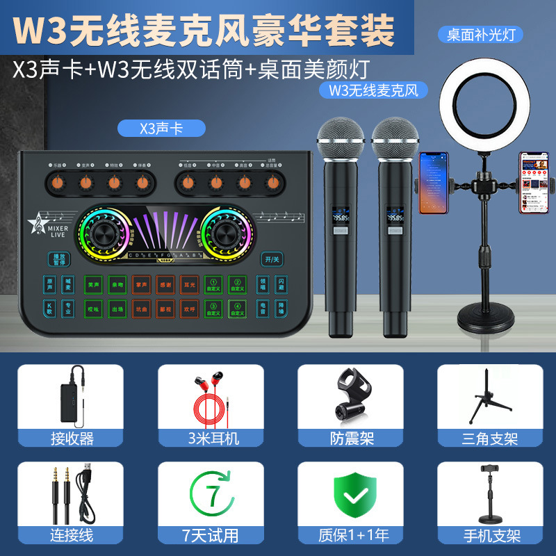 • [듀얼 마이크 노래방] W3 무선 마이크 + X3 사운드 카드✅뷰티 필 라이트