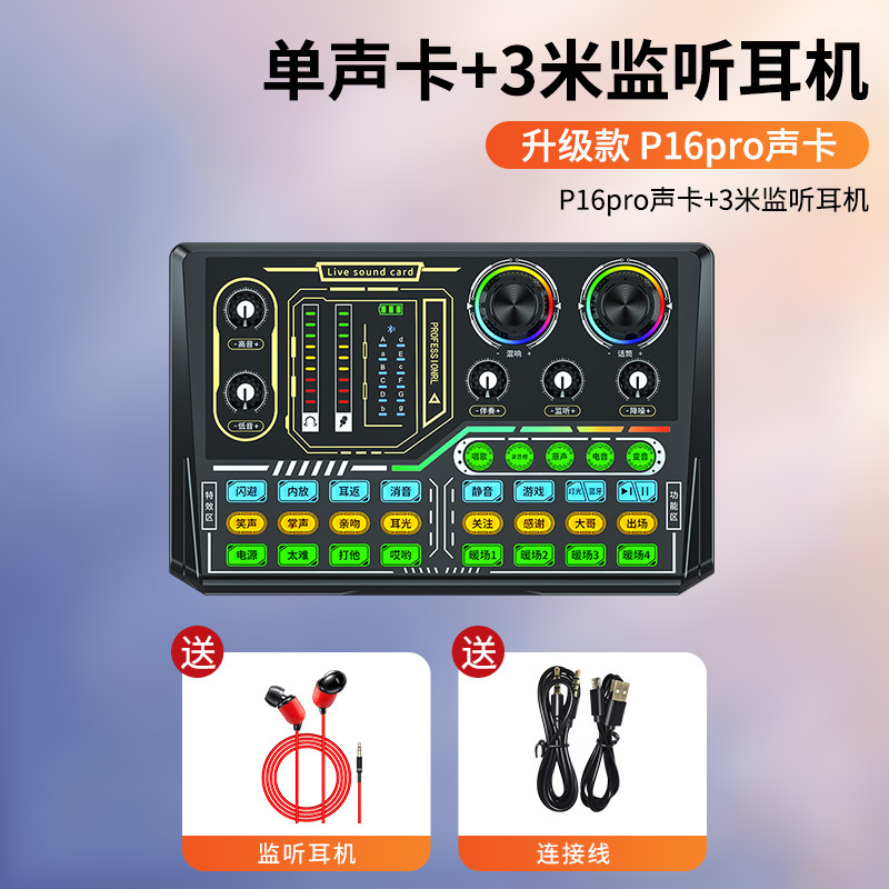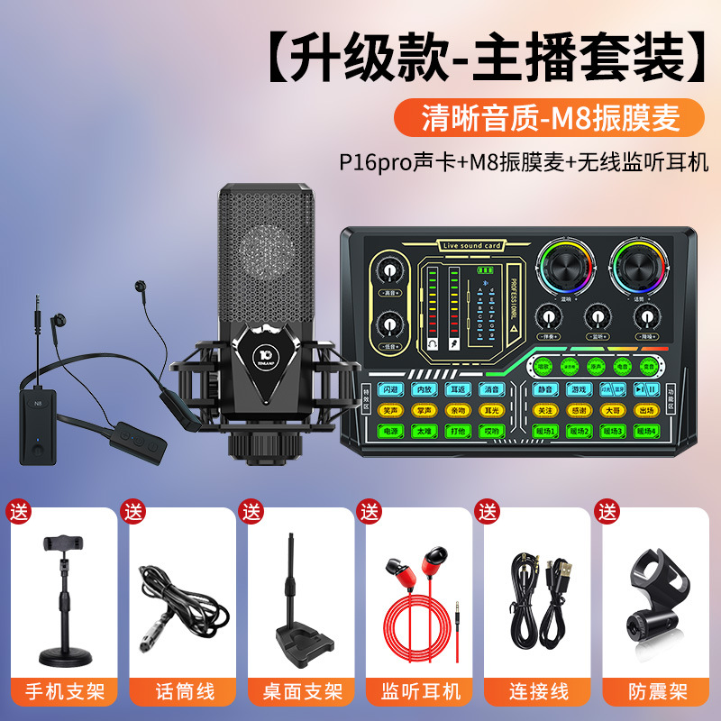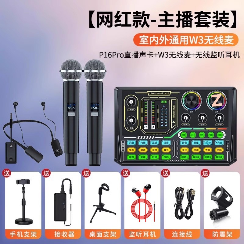 • 무선 모니터링 헤드폰 [P16pro 사운드 카드 + 대형 다이어프램 다이어프램 마이크]✅
