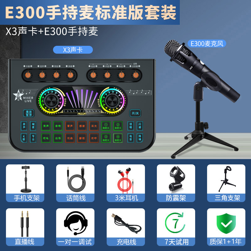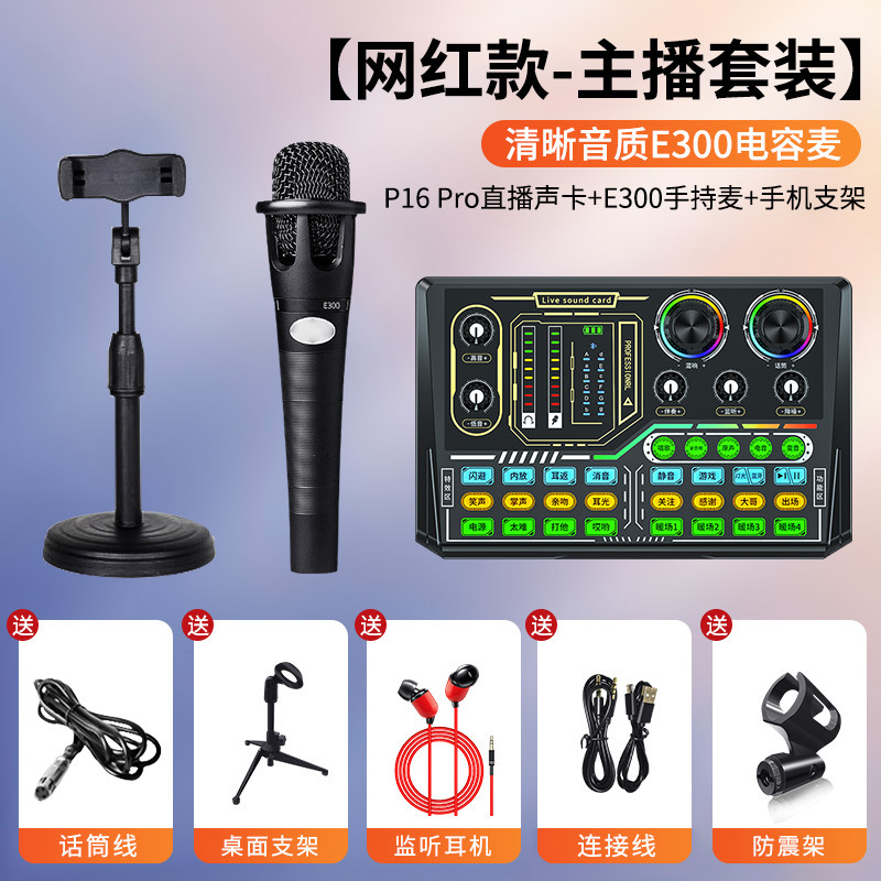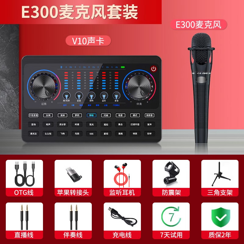 • [전문 사운드 카드] E300 마이크 + V10 사운드 카드(무료 OTG 라이브 방송 케이블)