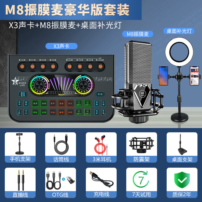 • [녹음실 음질] 대형 다이어프램 콘덴서 마이크-X3 사운드 카드 + 뷰티 필 라이트
