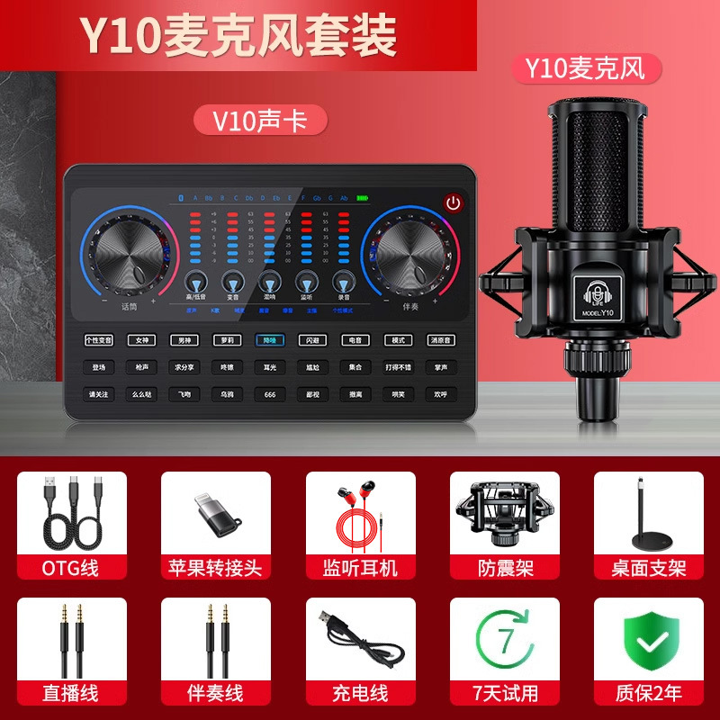 • [전문 사운드 카드] Y10 마이크 + V10 사운드 카드(무료 OTG 라이브 방송 케이블)