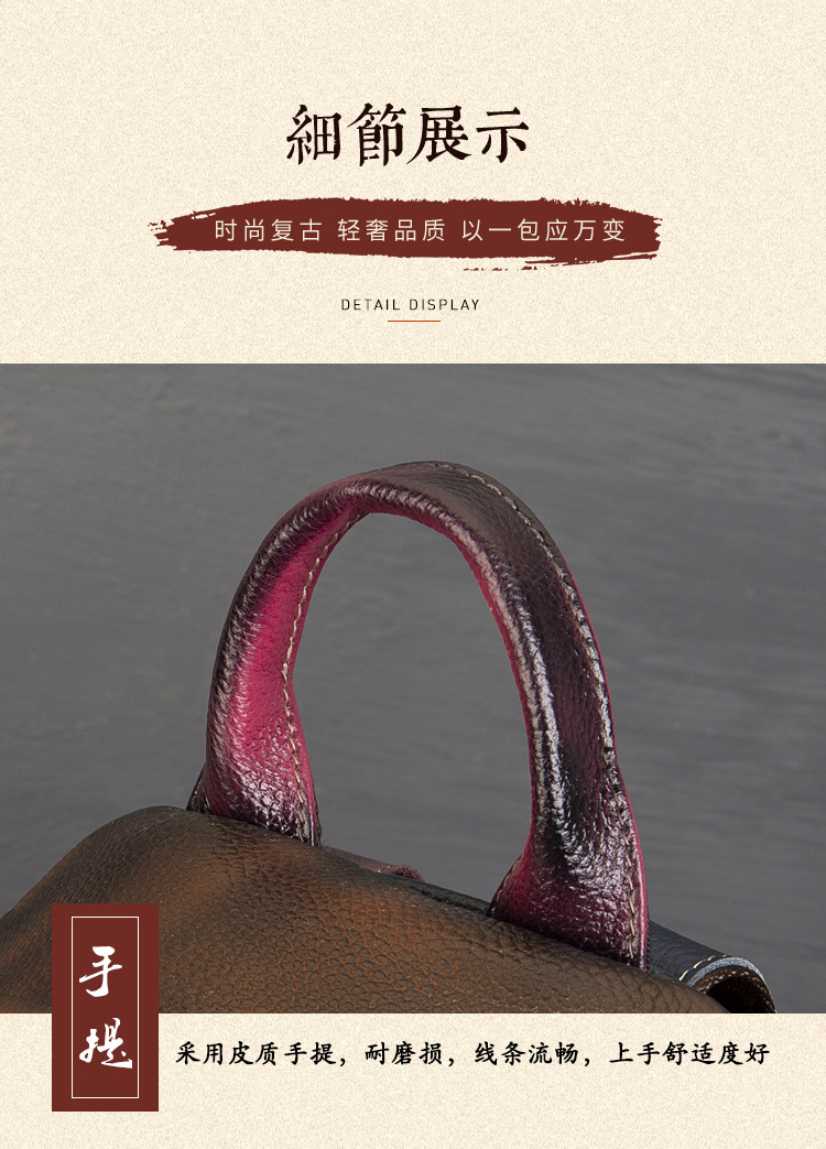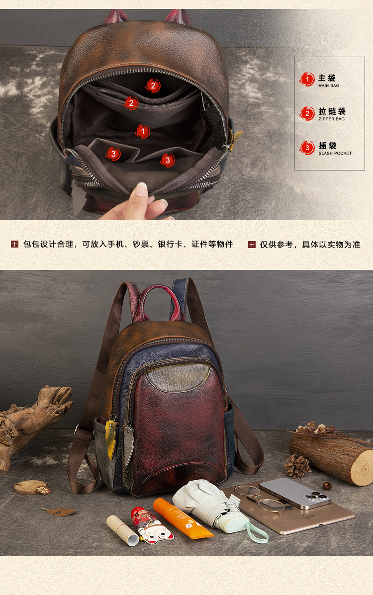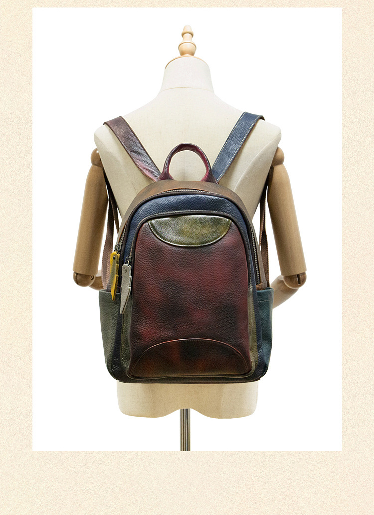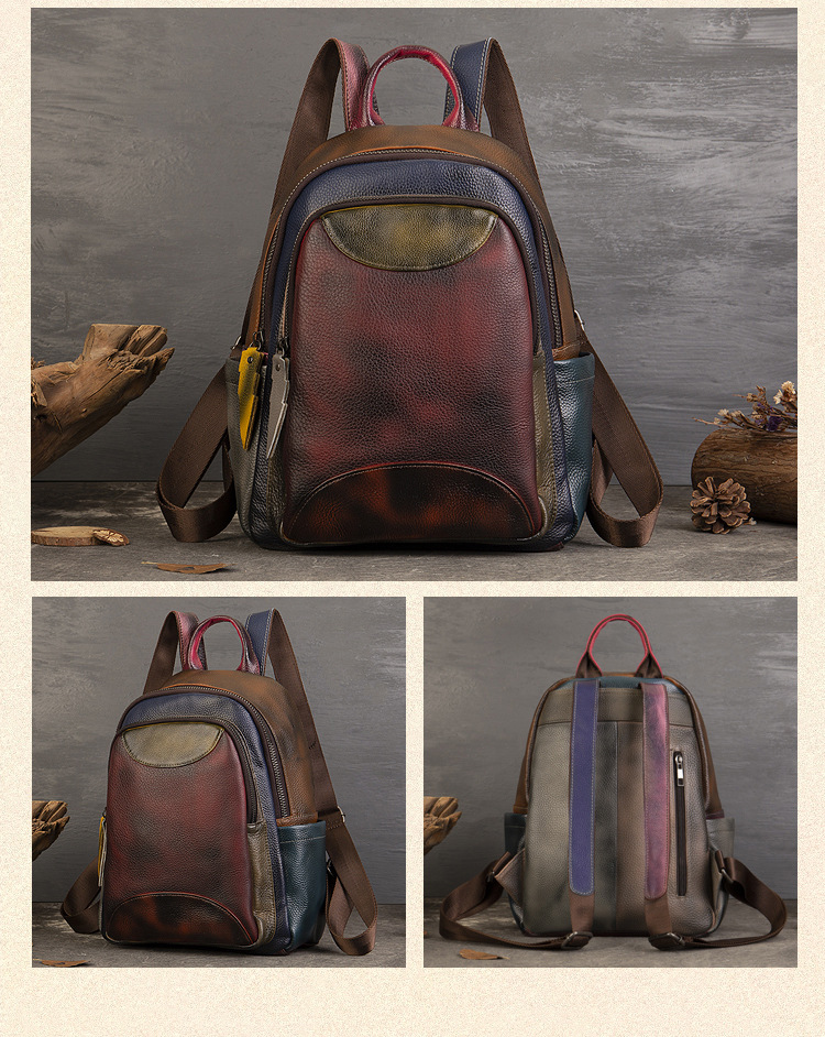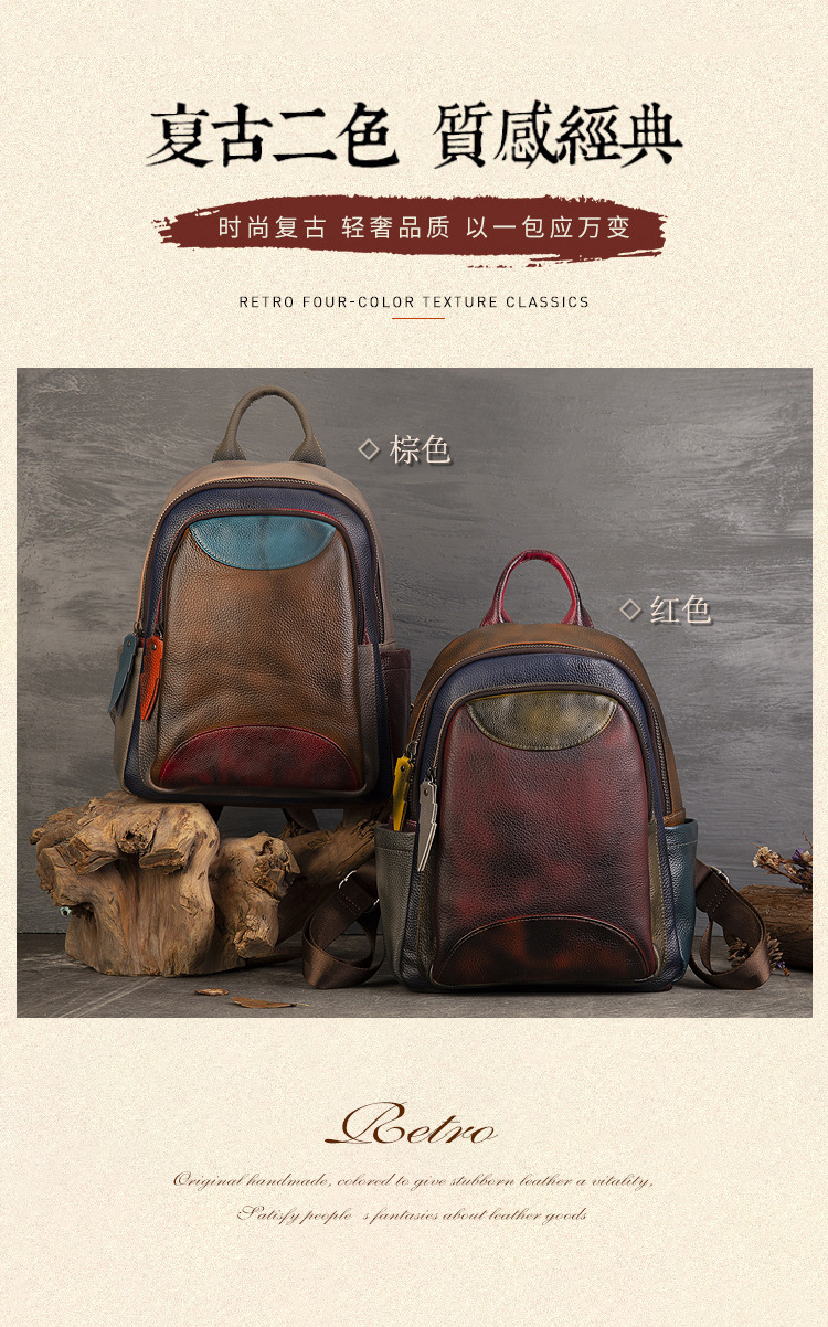 원래 수제 컬러 가죽 캐주얼 배낭 소프트 Cowhide 대용량 배낭 바느질 컬러 여행 등산 가방스토어 가기