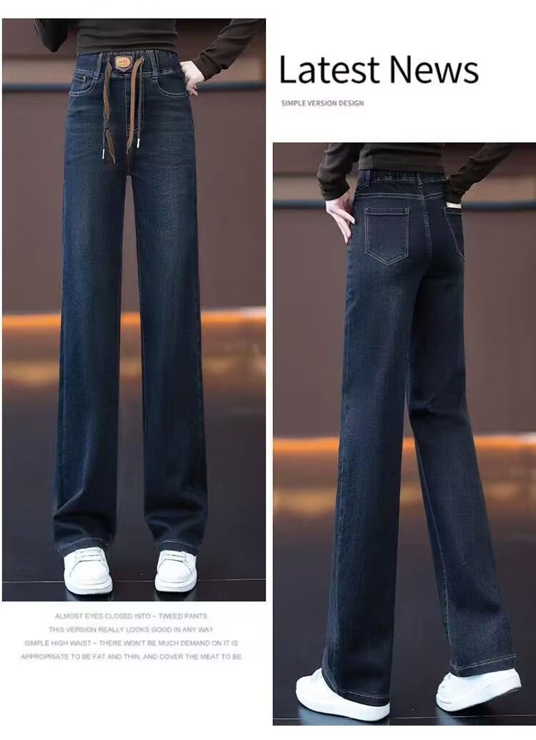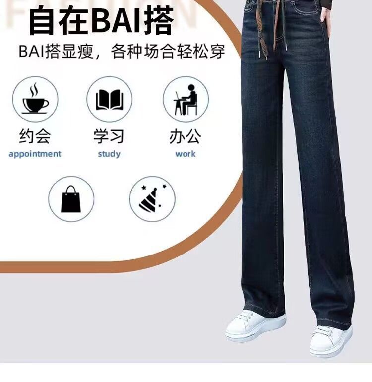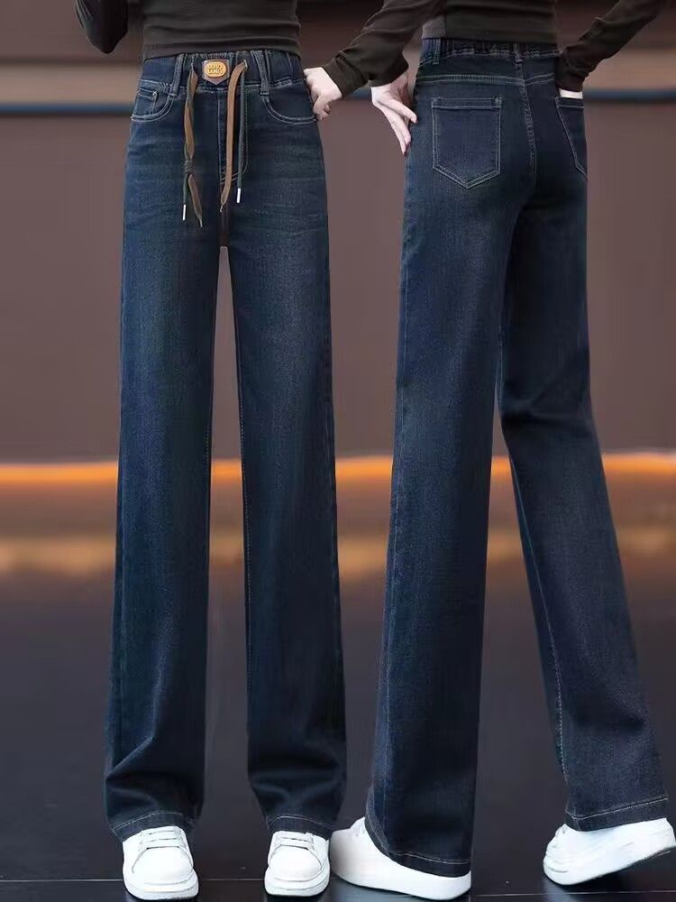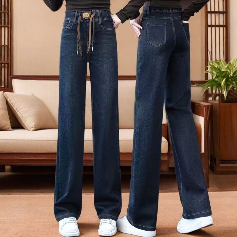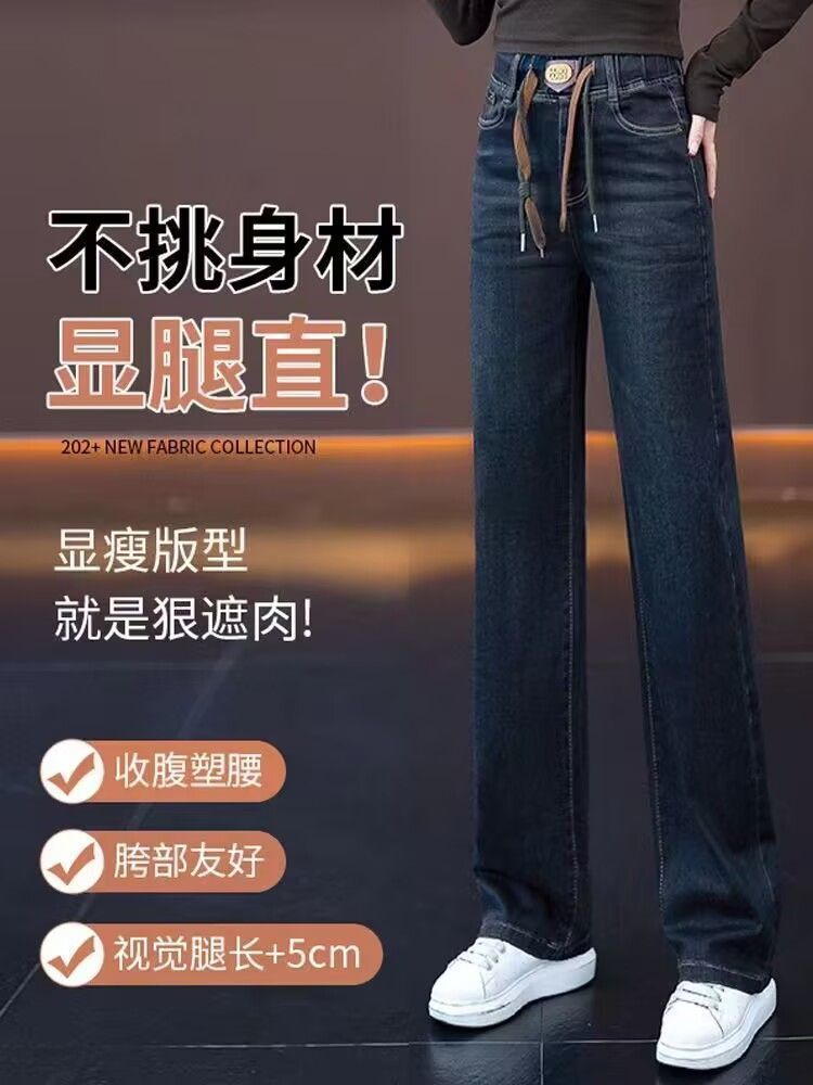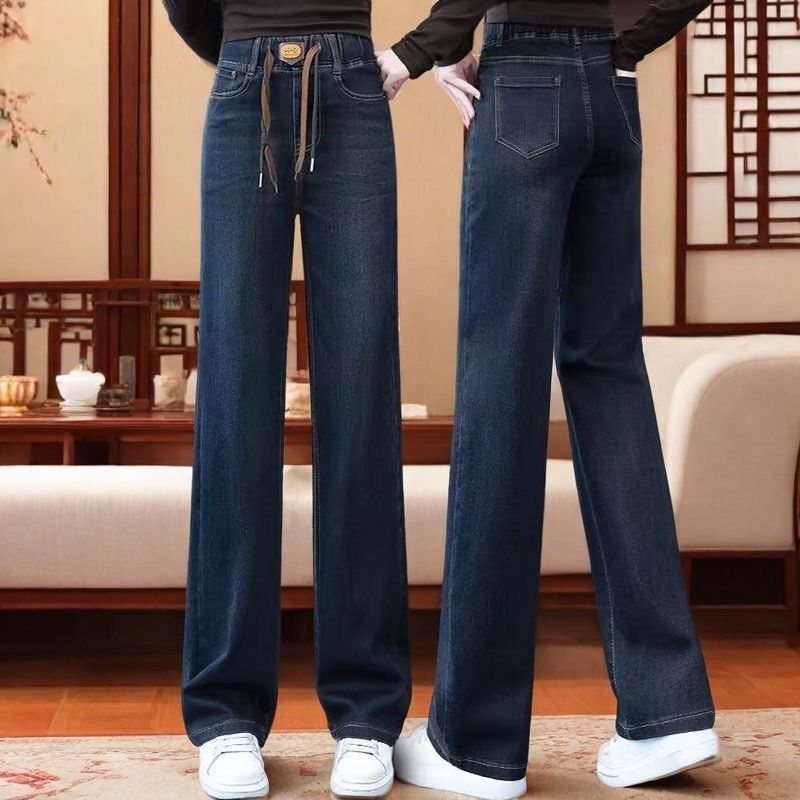 탄성 높은 허리 청바지 여성의 2025 년 봄과 가을 새로운 느슨한 슬림 핏 올매치 스트레치 좁은 스트레이트 다리 바지
