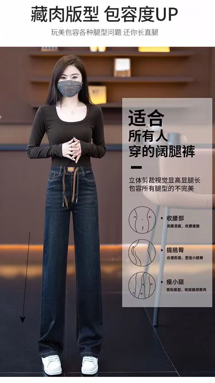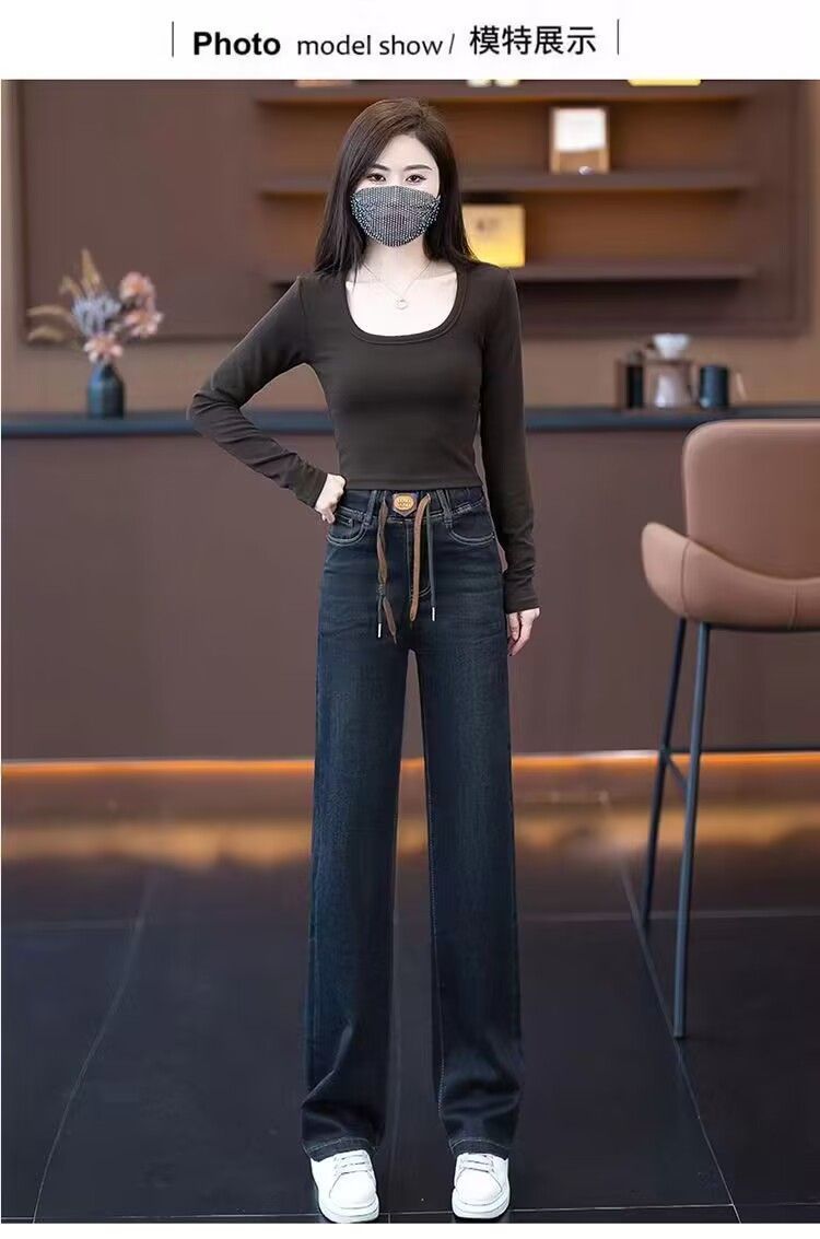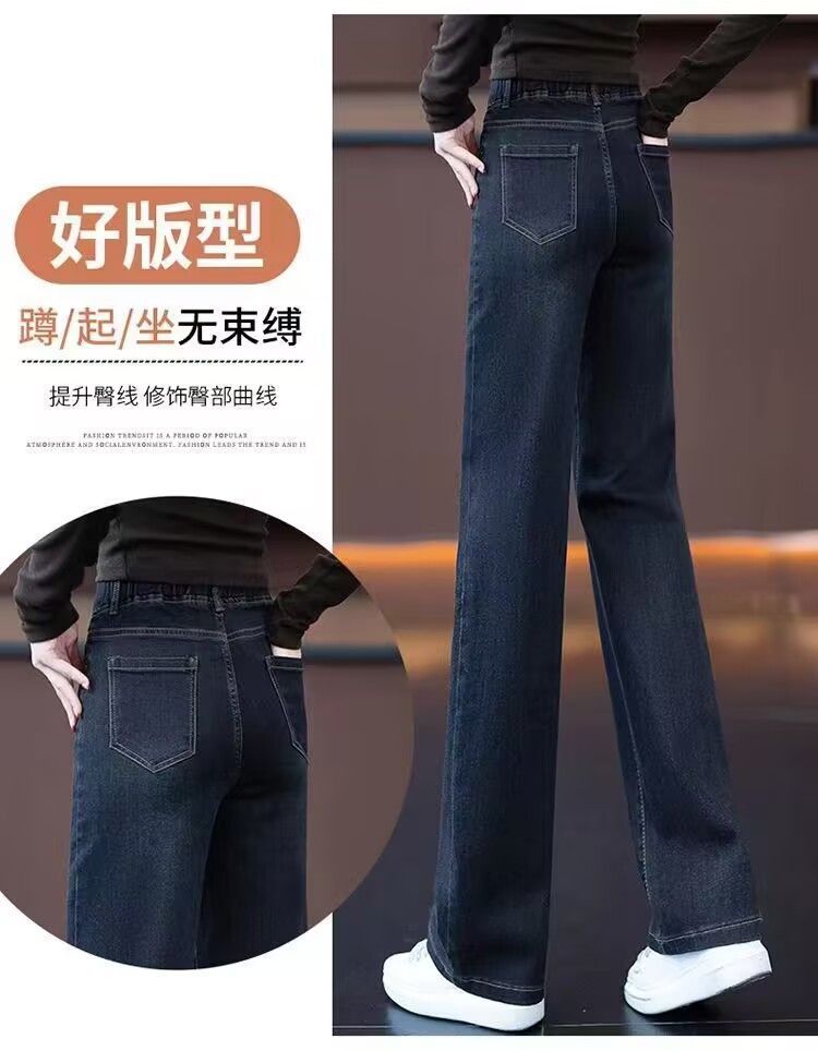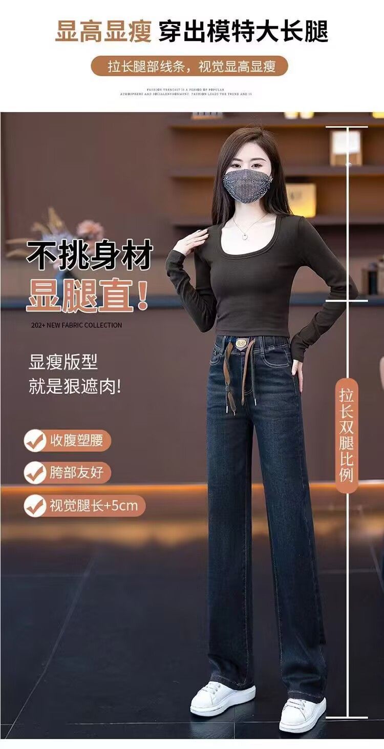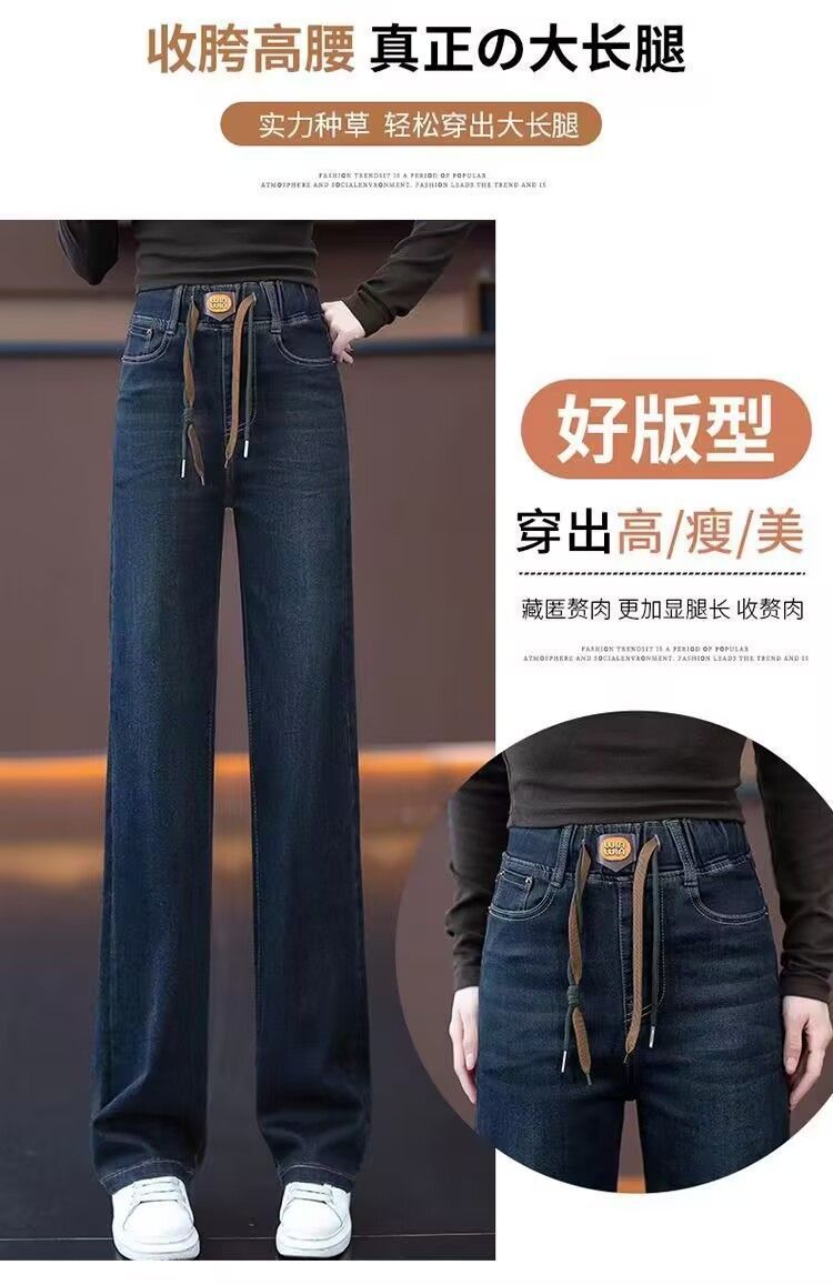 탄성 높은 허리 청바지 여성의 2025 년 봄과 가을 새로운 느슨한 슬림 핏 올매치 스트레치 좁은 스트레이트 다리 바지