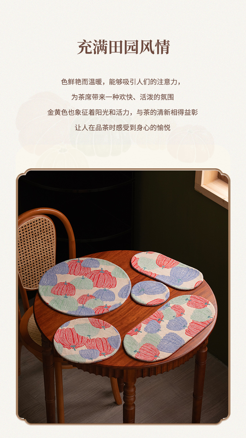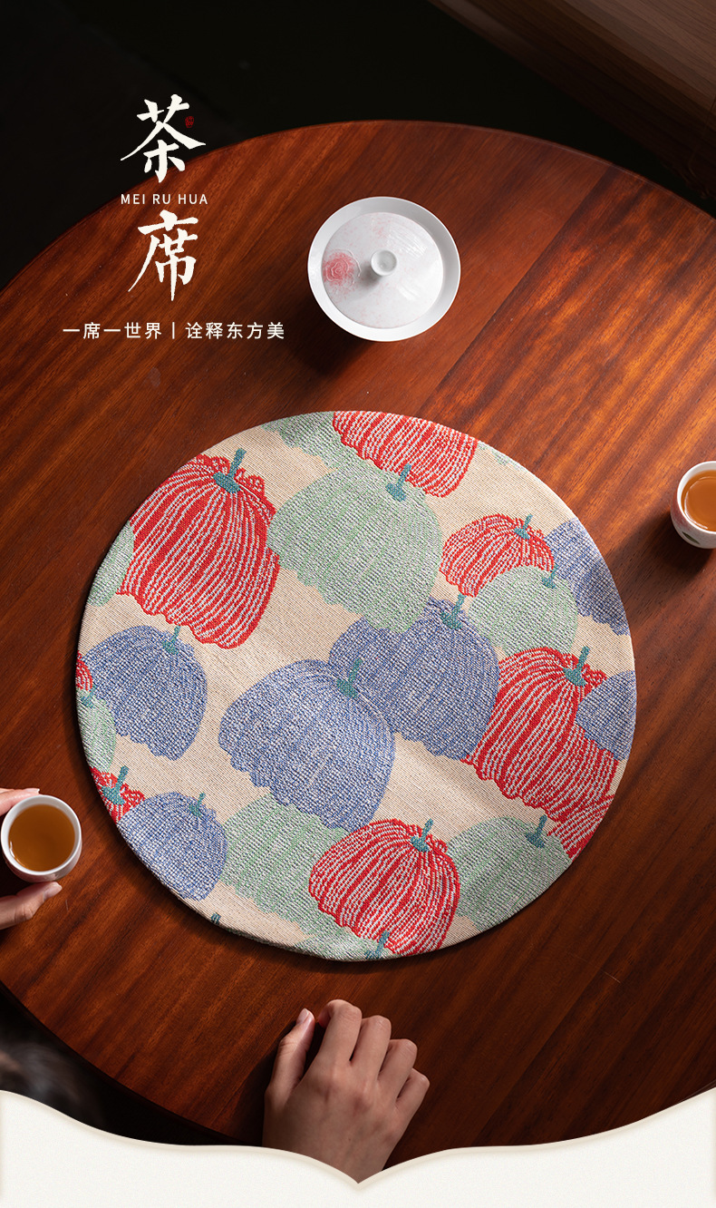 면 리넨 호박 차 매트 티 컵 매트 차 홀더 주전자 단열 매트 다도 테이블 천 새로운 중국 스타일 차 매트 두꺼운 수제