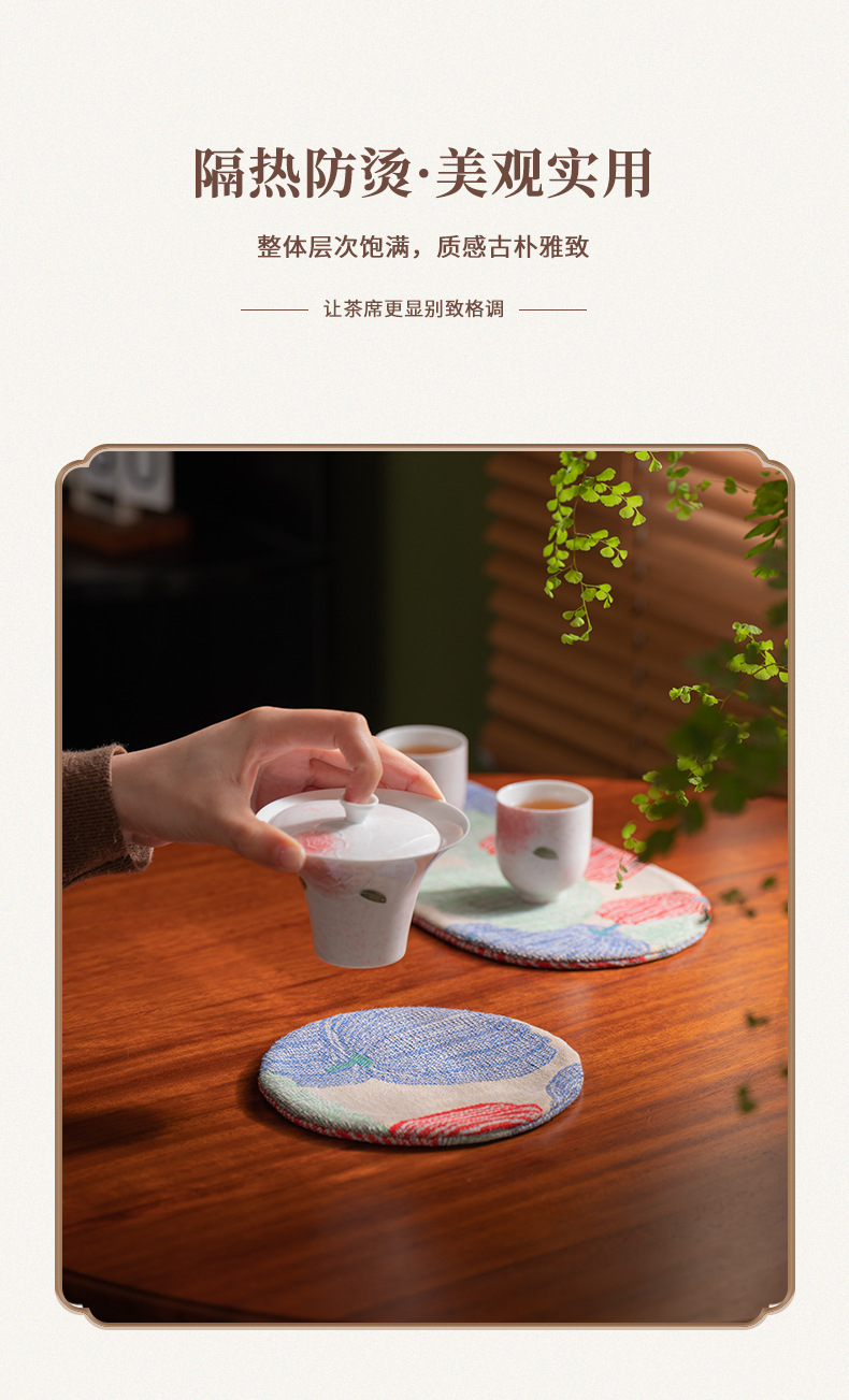 면 리넨 호박 차 매트 티 컵 매트 차 홀더 주전자 단열 매트 다도 테이블 천 새로운 중국 스타일 차 매트 두꺼운 수제스토어 가기