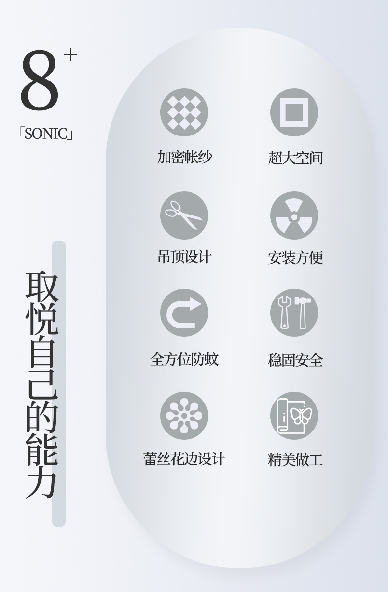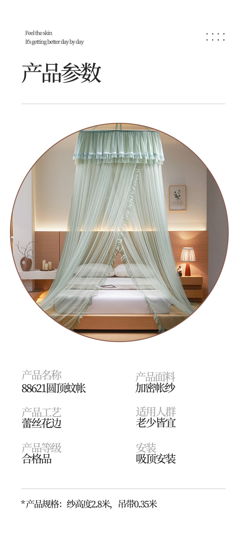 圆顶直径120cm*帐纱高度280cm+吊带35cm