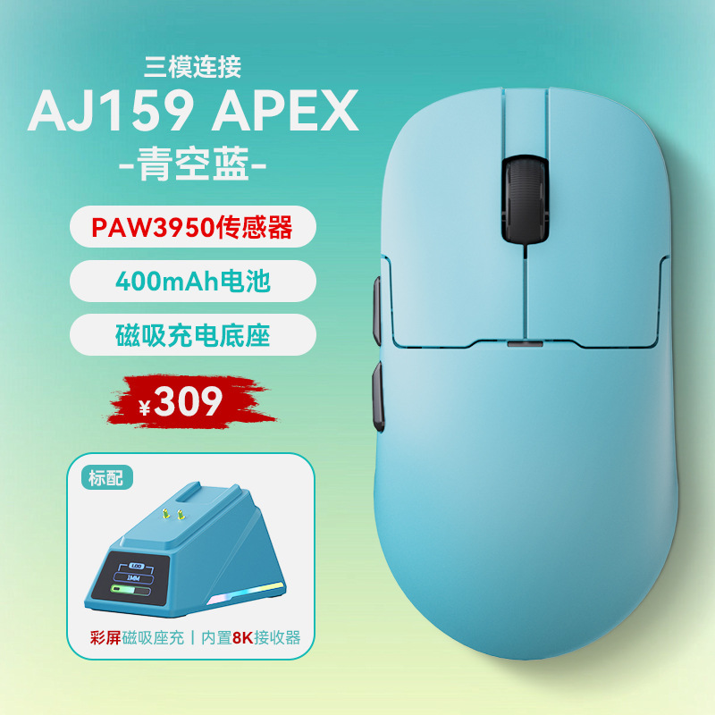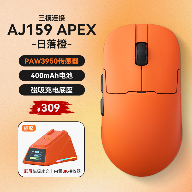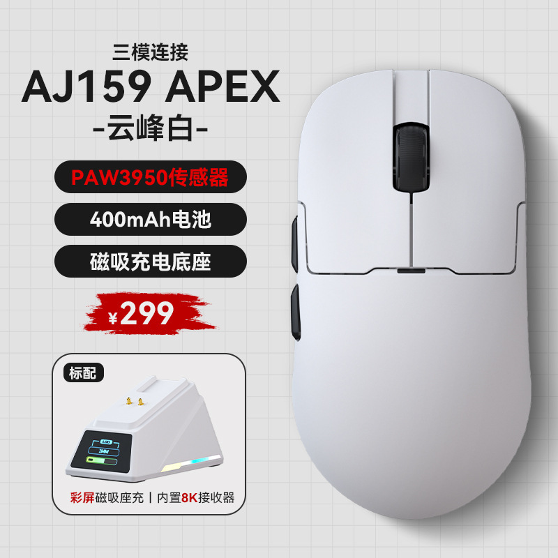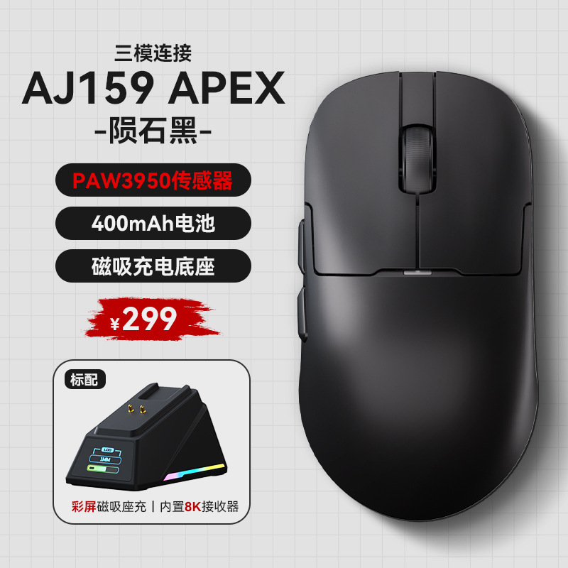 Heijue aj159apex 게임 마우스 PAW3395 충전 기반이있는 무선 3 모드 경량 마우스스토어 가기