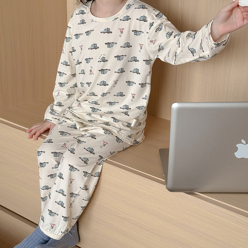 여름 어린이 홈 의류 세트 소년과 소녀 만화 유코스 긴 소매 파자마 아기의 에어컨 옷 봄과 가을스토어 가기