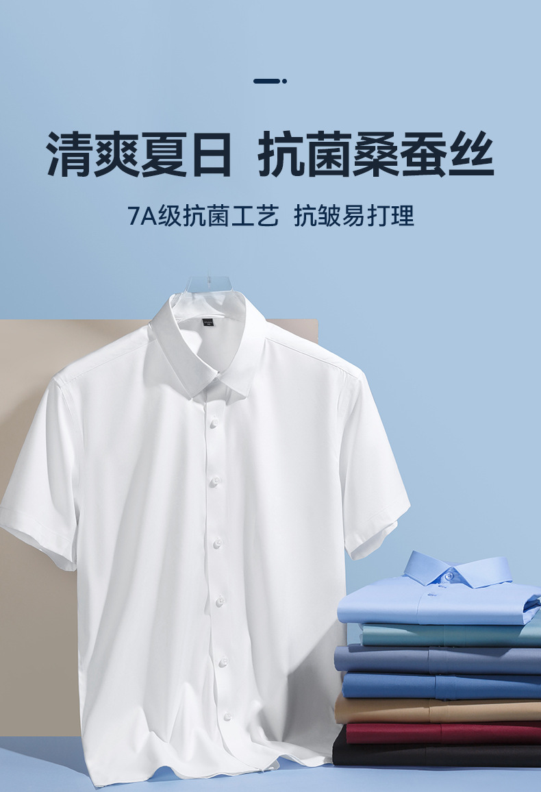 7A 항균 뽕나무 실크 반팔 남성용 셔츠 단색 전문 비즈니스 캐주얼 남성용 대나무 섬유 아이스 실크 셔츠스토어 가기