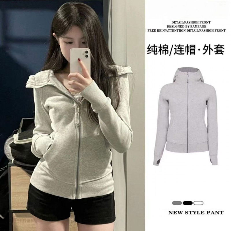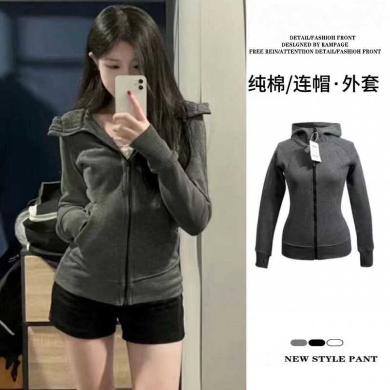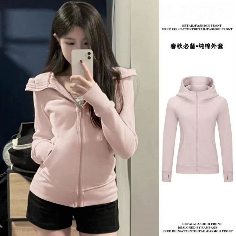 코트 카디건 2025 봄과 가을 새로운 슬림 핏 탑 블랙 후드 스웨터 슬리밍 스포츠 요가 옷 지퍼스토어 가기