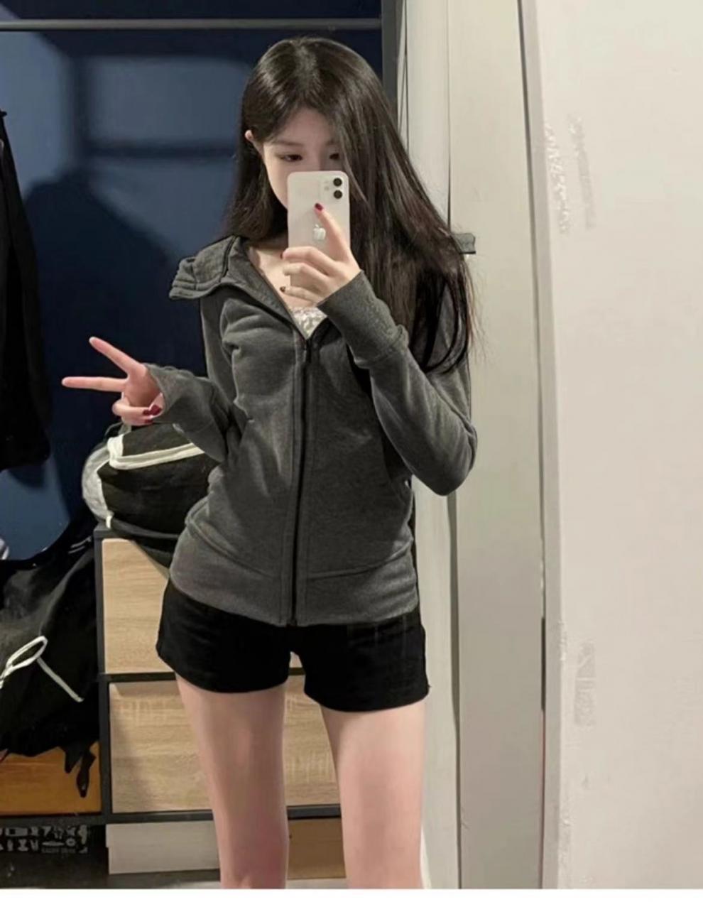 코트 카디건 2025 봄과 가을 새로운 슬림 핏 탑 블랙 후드 스웨터 슬리밍 스포츠 요가 옷 지퍼