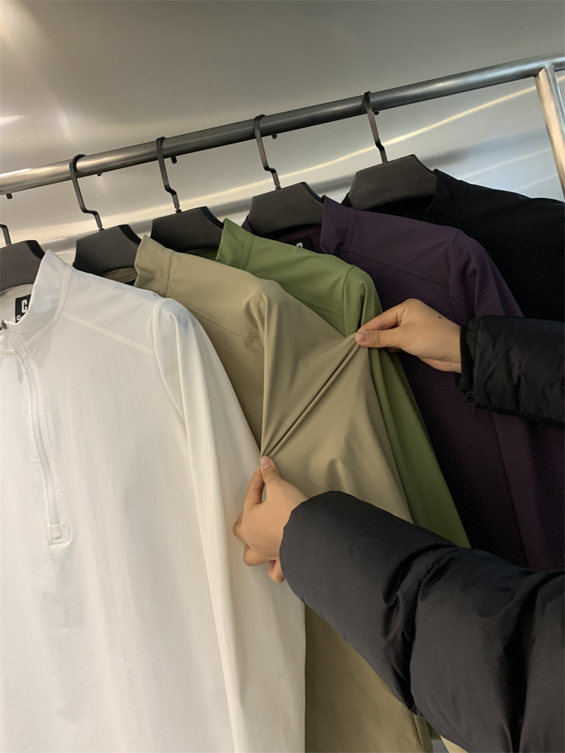 섬 목록! 격자 무늬 질감! 봄과 여름 새로운 빠른 건조 스포츠 레저 통기성 스탠드 칼라 하프 지퍼 스웨터베이스스토어 가기