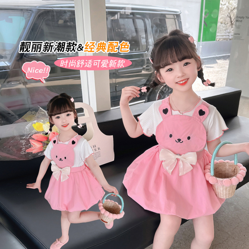 여자 여름 2025 스트랩 원피스 세트 유행 웨스턴 스타일 달콤한 아기 소녀 한국 스타일 여름 원피스 스트래피 원피스 짧은 소매스토어 가기