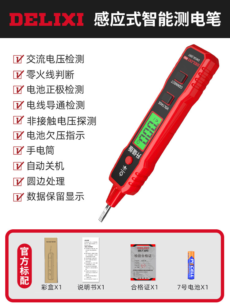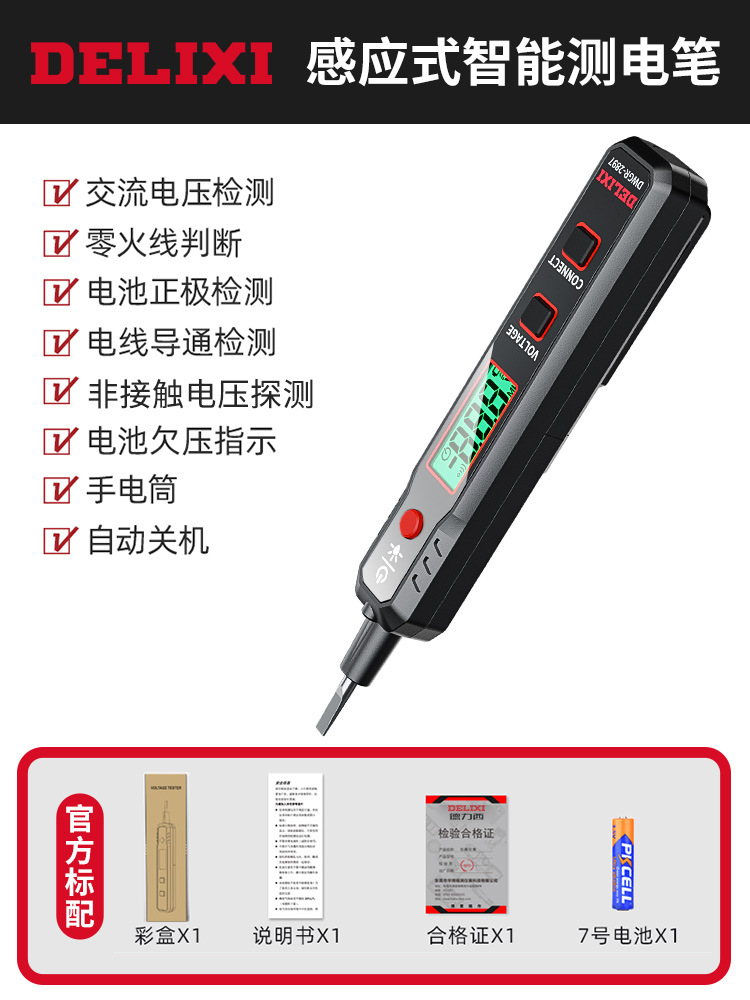 Delixi R2897 전기 펜 지능형 전압 측정 다기능 깨진 와이어 측정 디지털 디스플레이 전기 특수 유도 테스트 펜스토어 가기