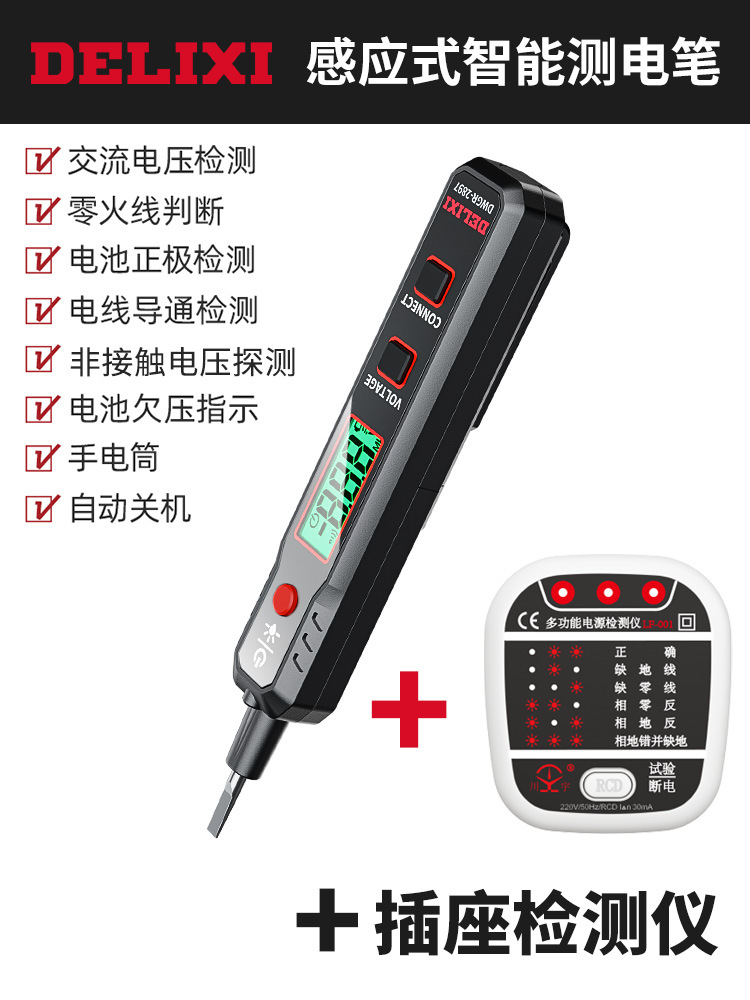 • Delixi 2897 지능형 전기 테스트 펜 + 소켓 감지기