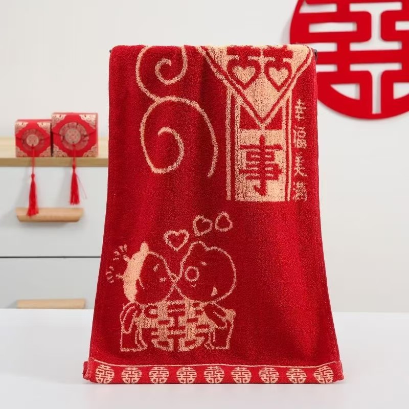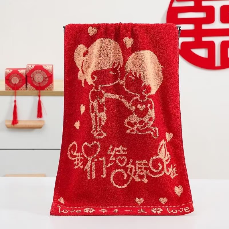 새로운 웨딩 선물 수건 큰 붉은 두꺼운 축제 붉은 얼굴 세척 가구 웨딩 웨딩 선물 수건스토어 가기